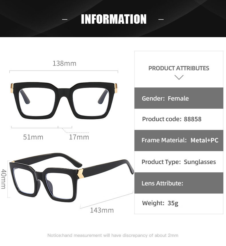 | Frame Color | Bright Black and White,Transparent gray sheet,Transparent green and white,Transparent blue and white sheet,Transparent pink white sheet,Transparent White Film |