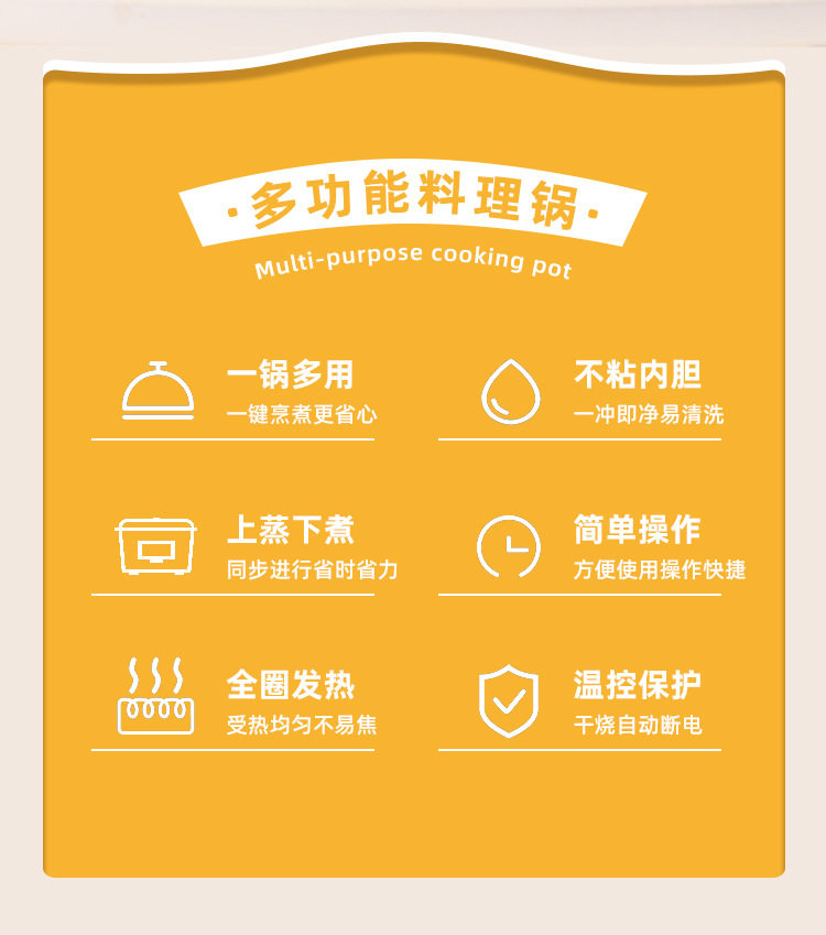 | Electric heating/hot pot function | Steaming,Fried,Fried,Boiling,Stew,Braised,Hot Pot |