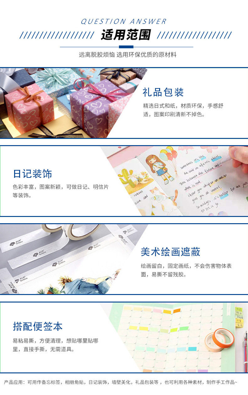| Scope of application | Pasting paper, gift wrapping, beautification, layout, decoration and other uses |