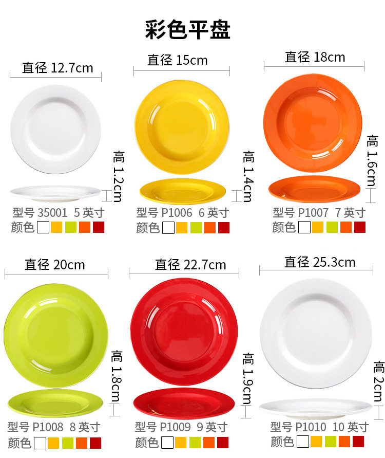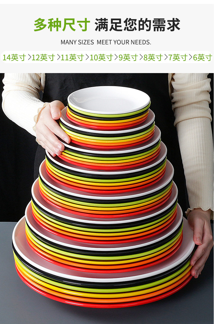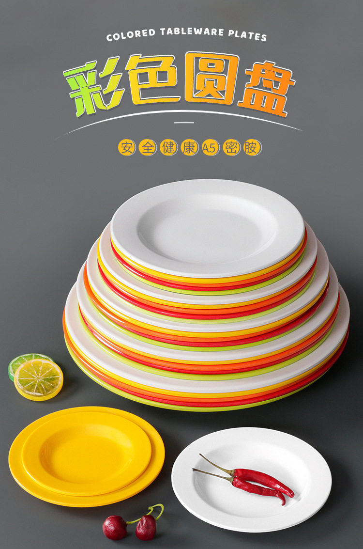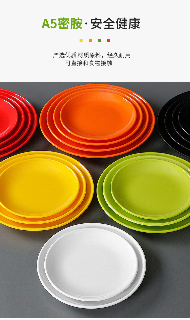 Color A5 melamine tableware plastic plate round commercial plate fast food plate disc imitation porcelain covered rice pouring plate plate plate