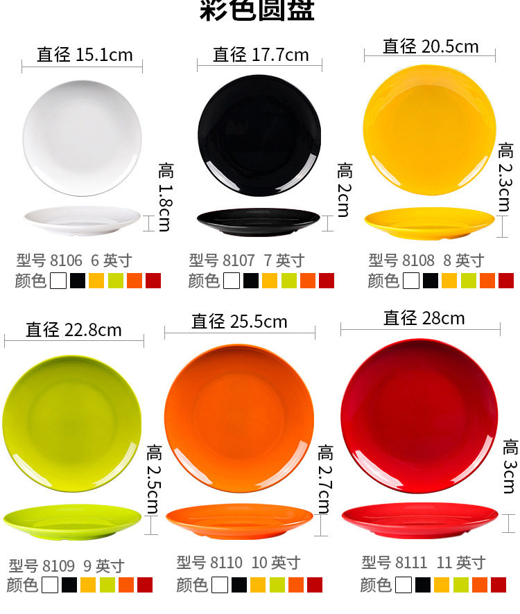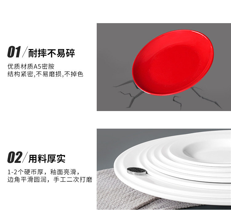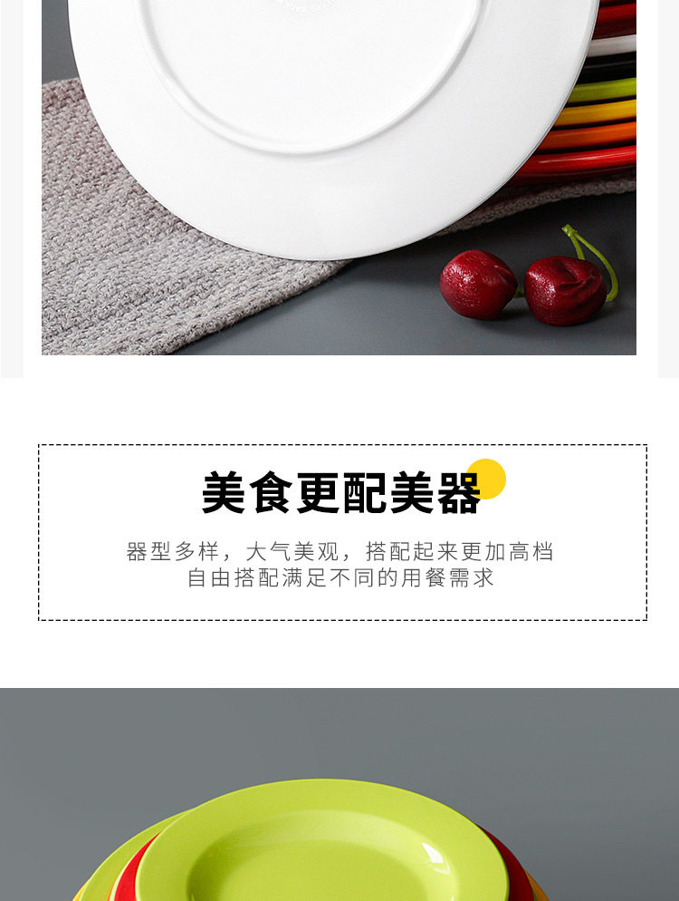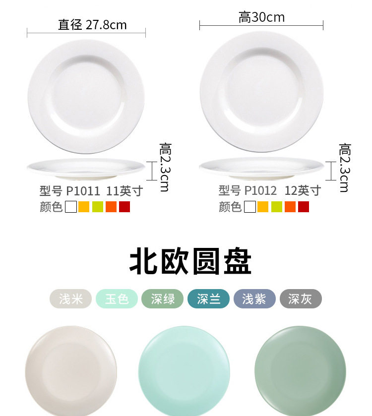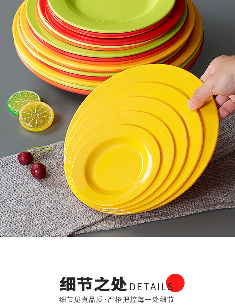 Color A5 melamine tableware plastic plate round commercial plate fast food plate disc imitation porcelain covered rice pouring plate plate plate