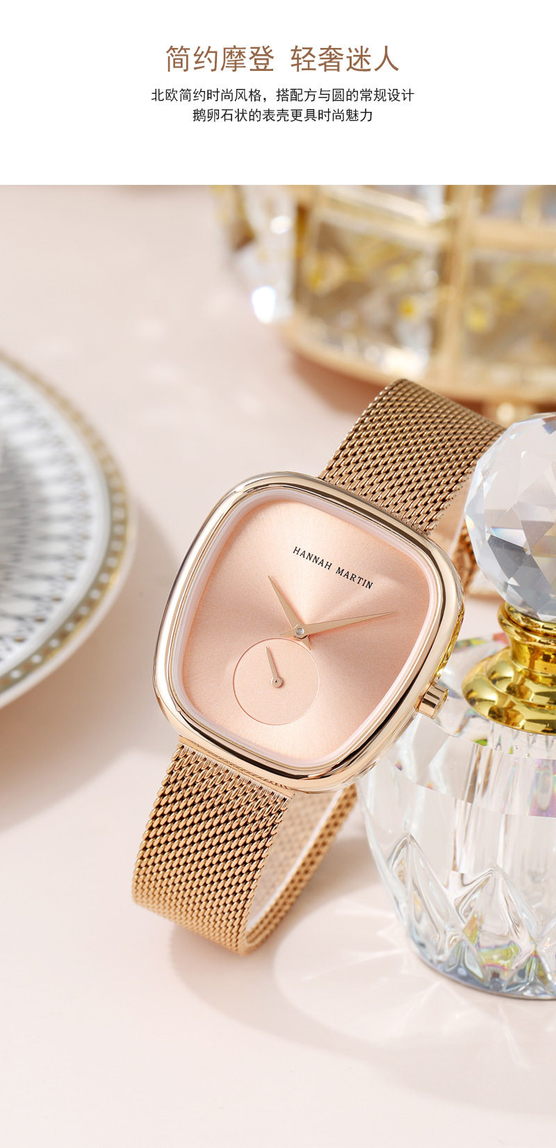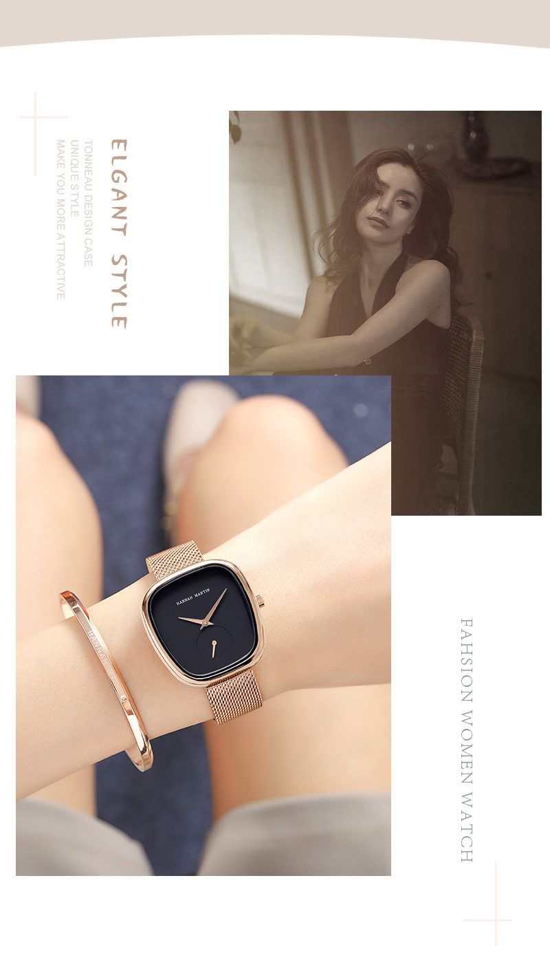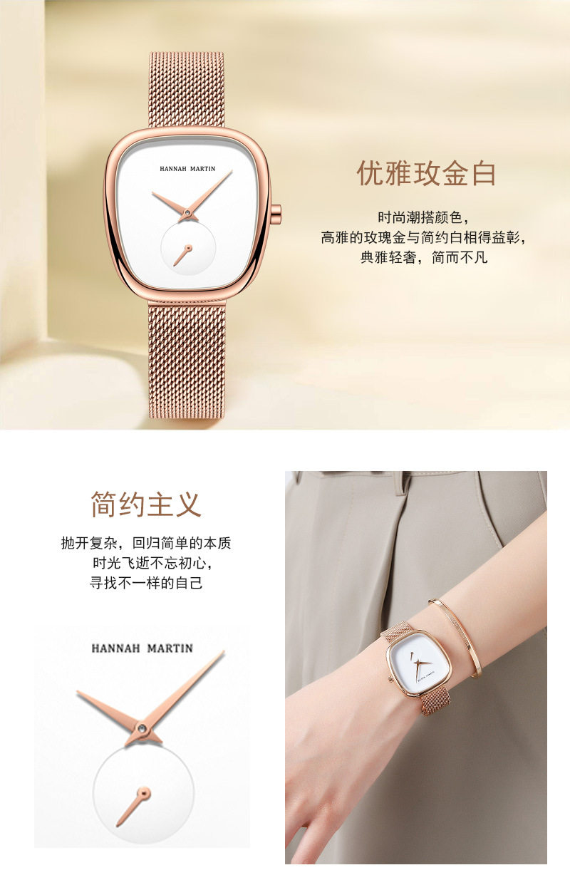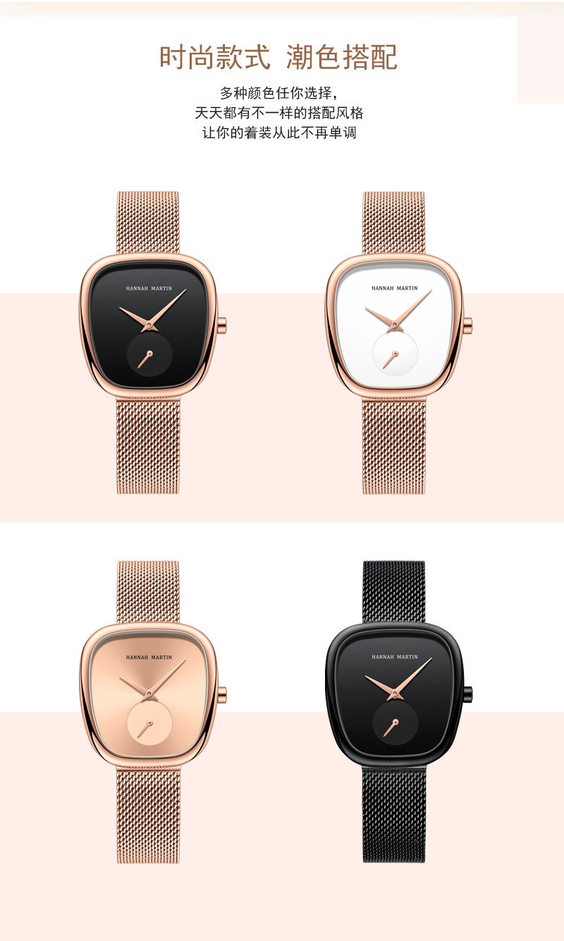 Hannah Martin Women's Steel Women's Watch Steel Band Quartz Watch Creative Two-pin Half Barrel Design European and American Watch