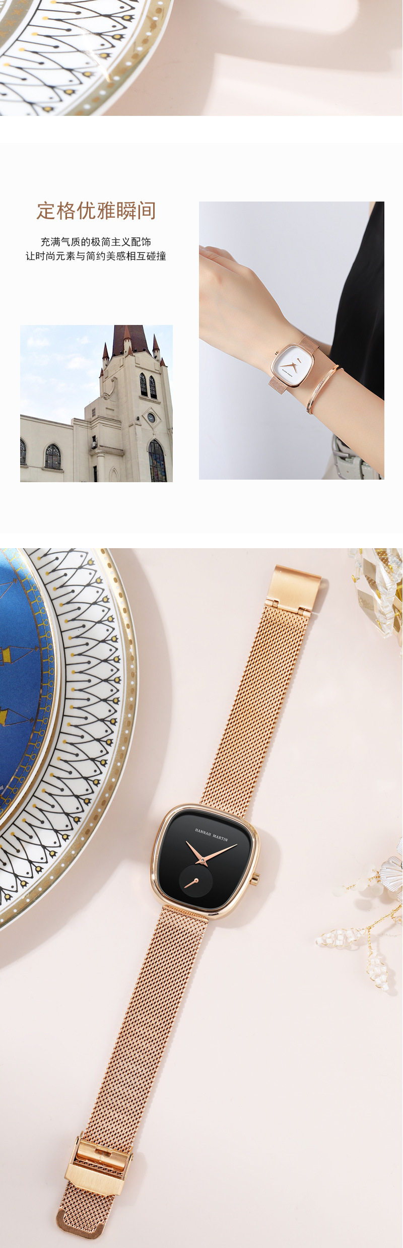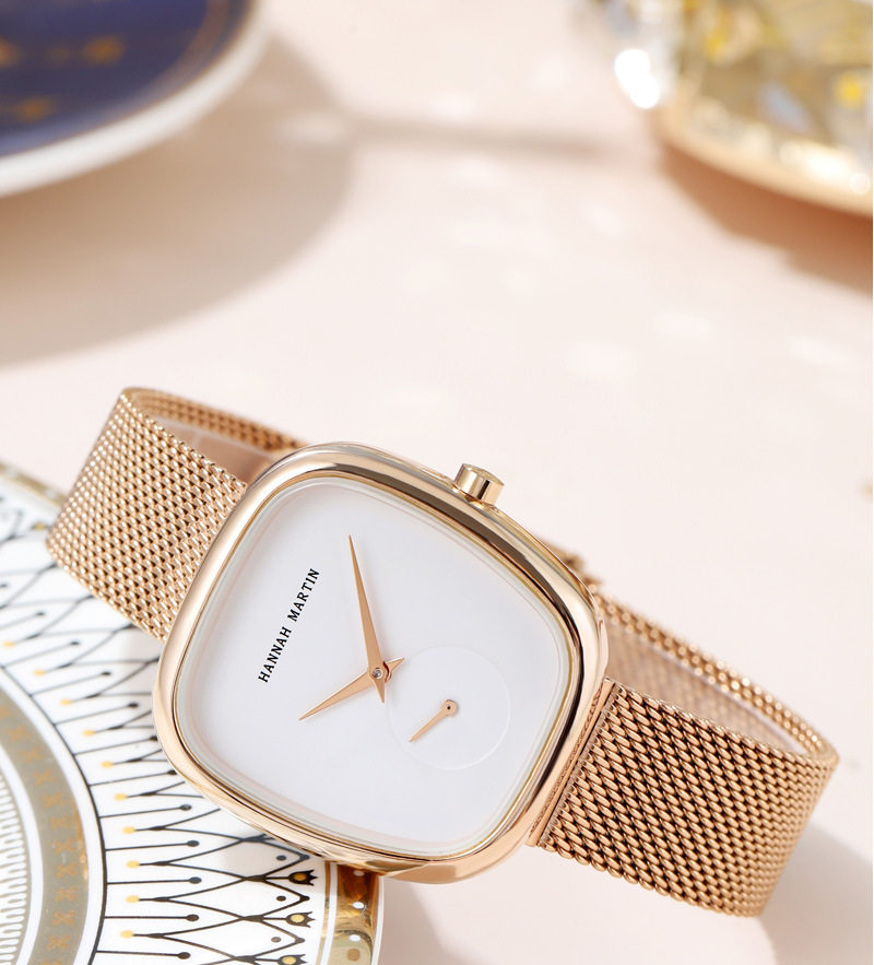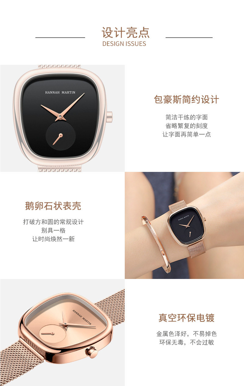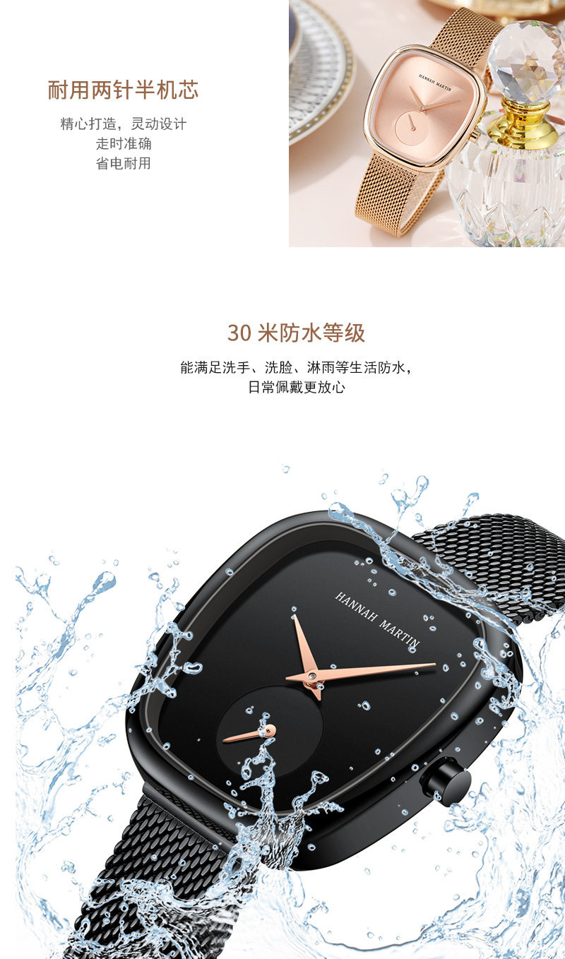 Hannah Martin Women's Steel Women's Watch Steel Band Quartz Watch Creative Two-pin Half Barrel Design European and American Watch