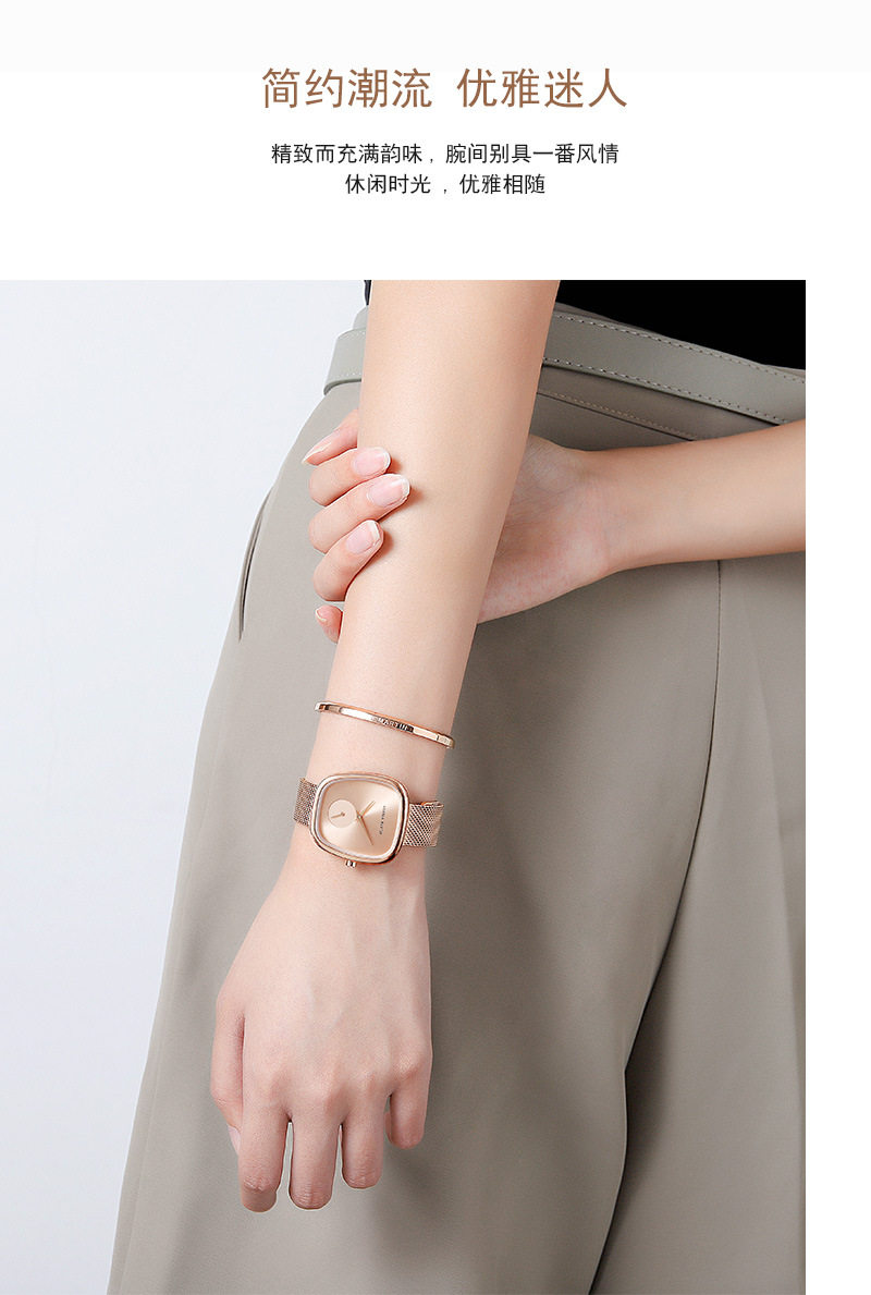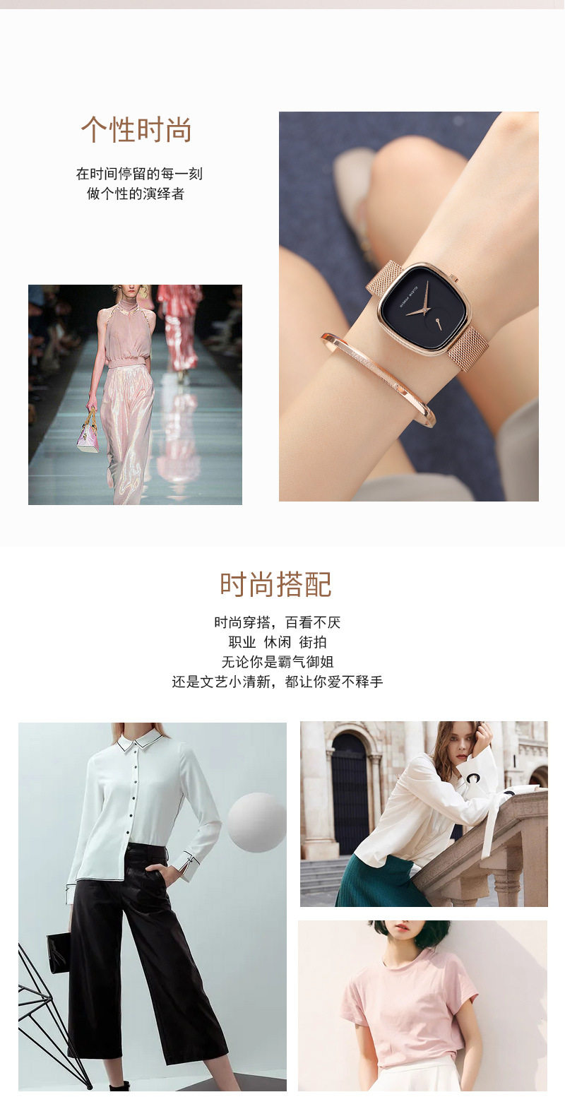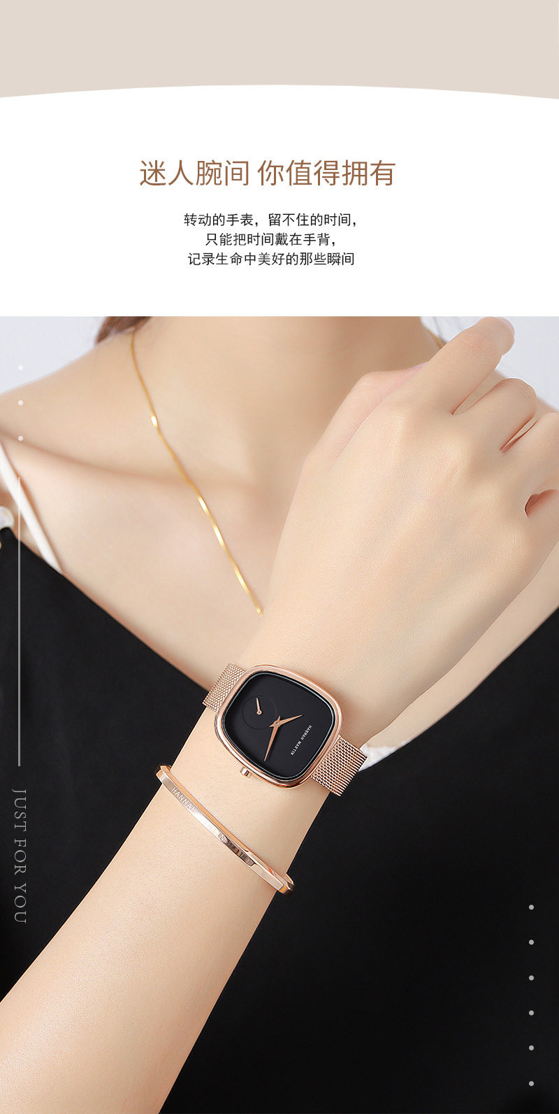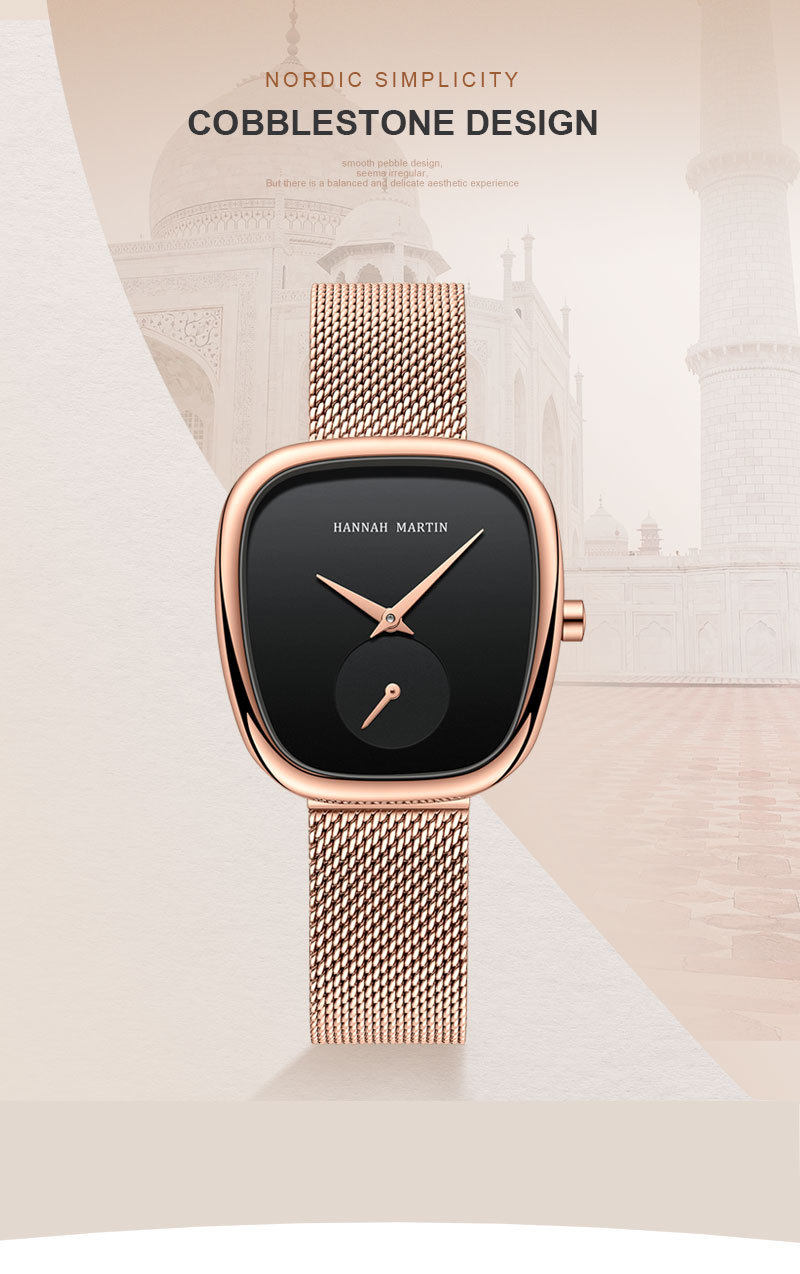 Hannah Martin Women's Steel Women's Watch Steel Band Quartz Watch Creative Two-pin Half Barrel Design European and American Watch