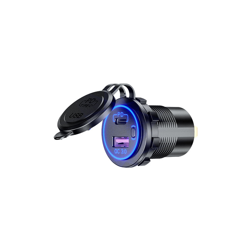 Cross-border new car modification USB + PD port car phone charger motorcycle type-c car charger with switch