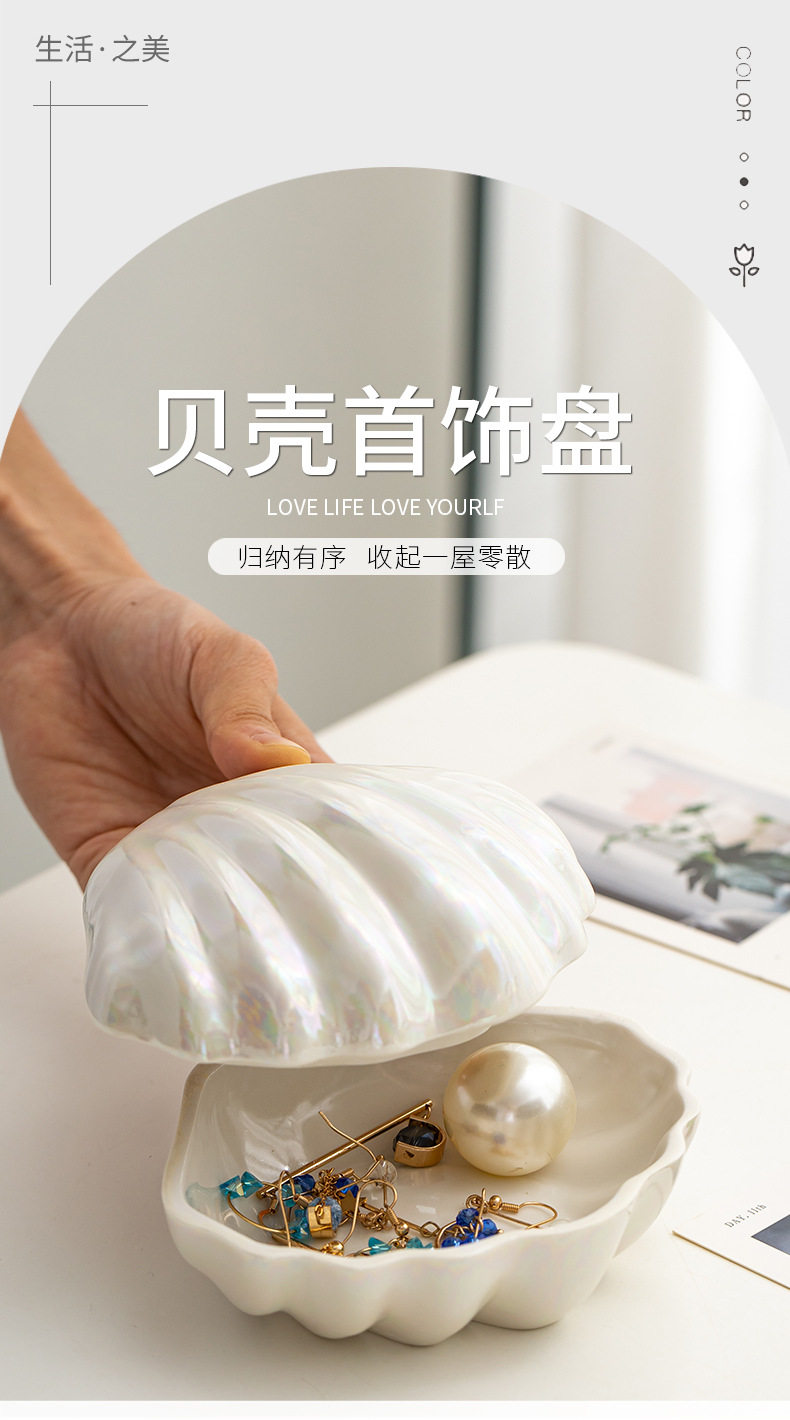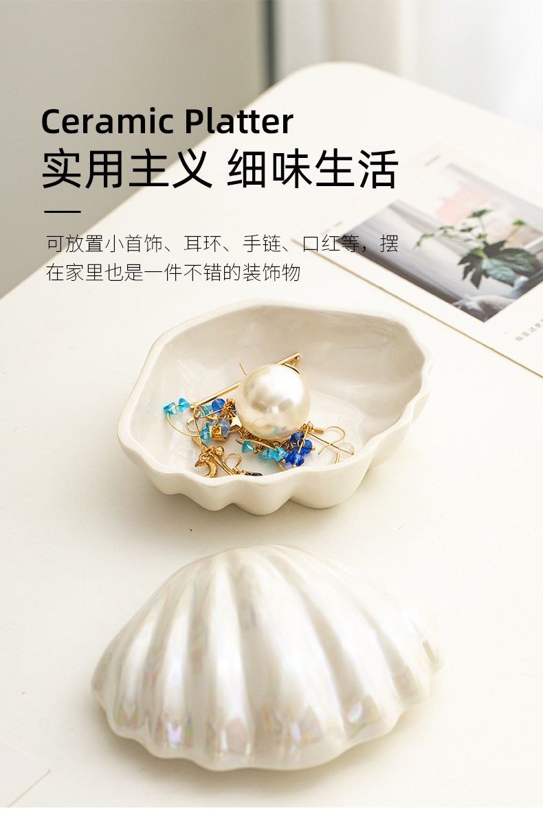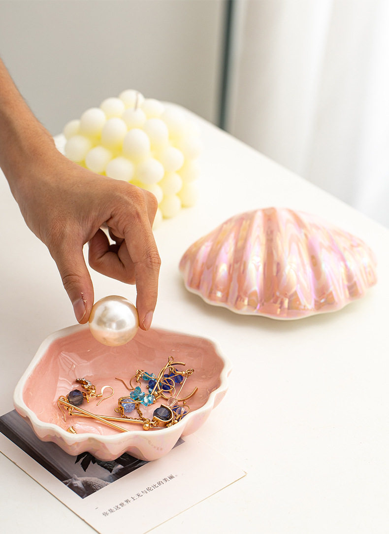 Cross-border Exclusive Magic Color Ceramic Shell Jewelry Box Pearl Glaze Jewelry Storage Box Dressing Table Home Creative Ornaments