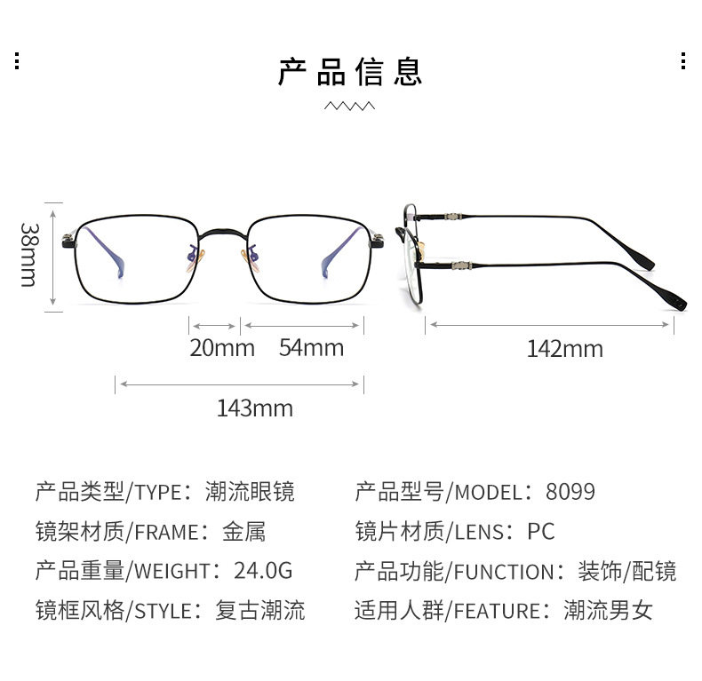 New retro myopia glasses frame men's and women's same full frame large frame round frame glasses frame anti-blue light flat glasses 8099