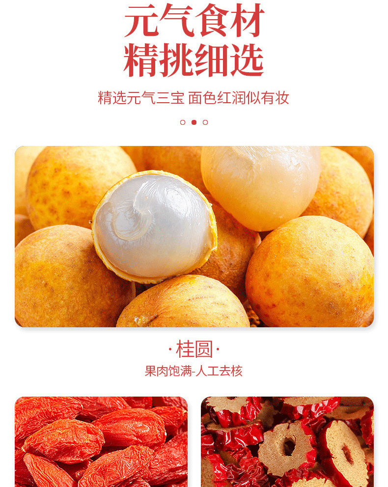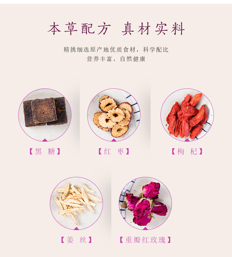 | Raw materials and ingredients | Black sugar, red dates, ginger, longan, medlar |