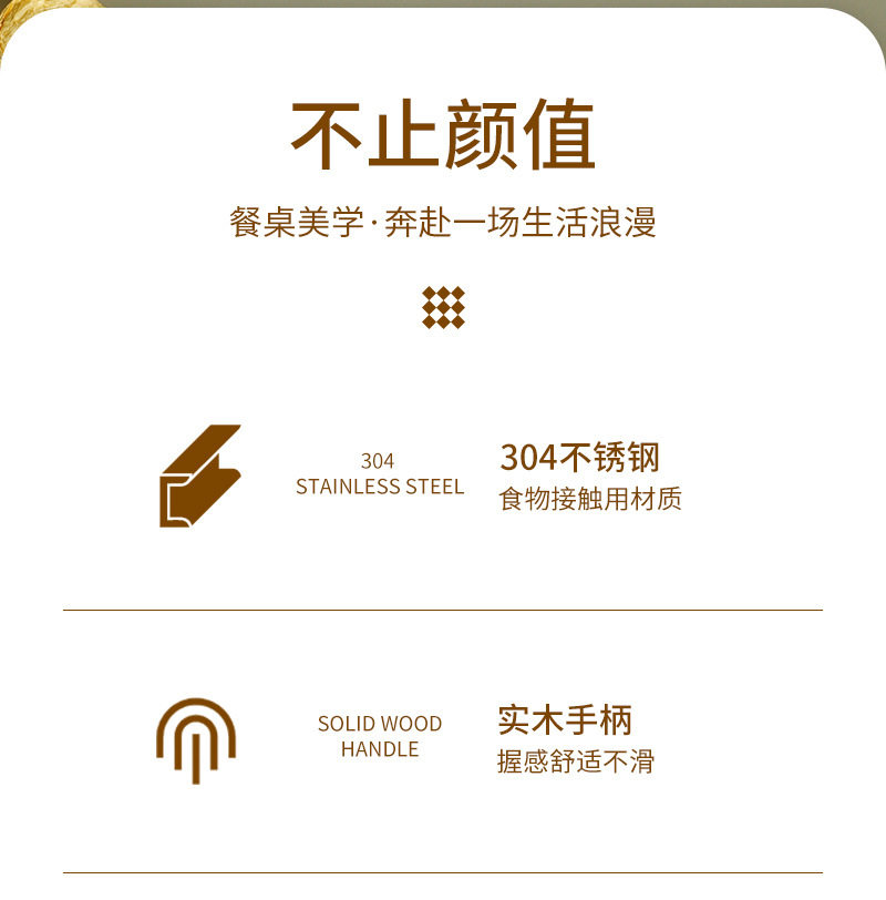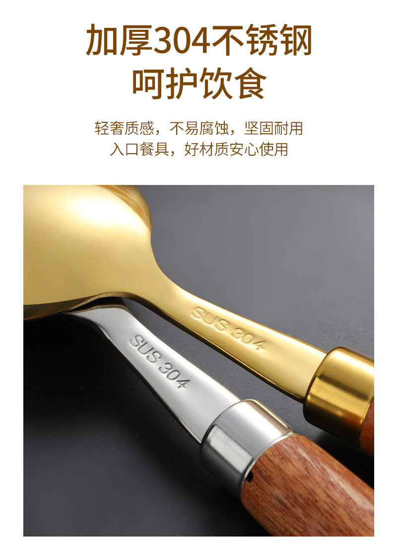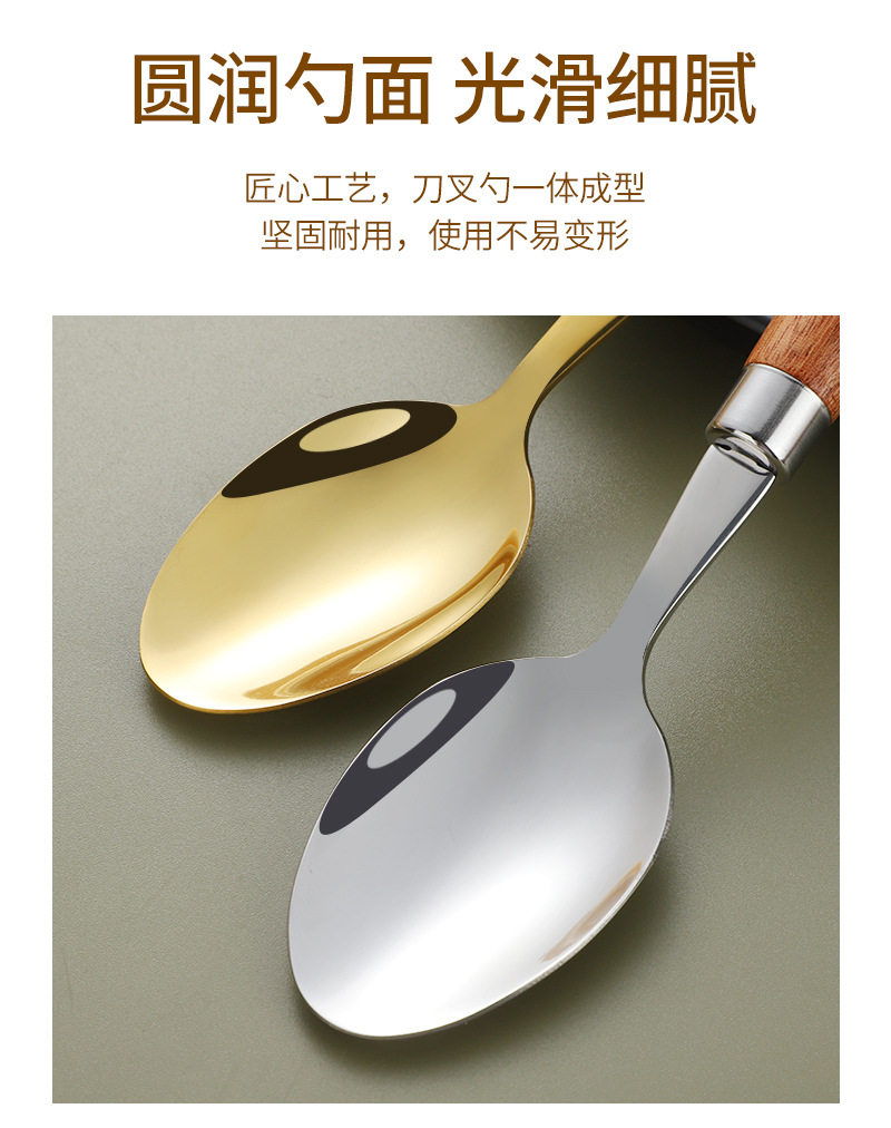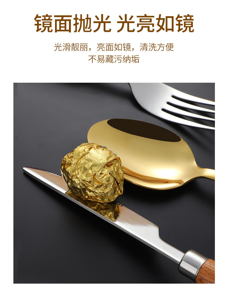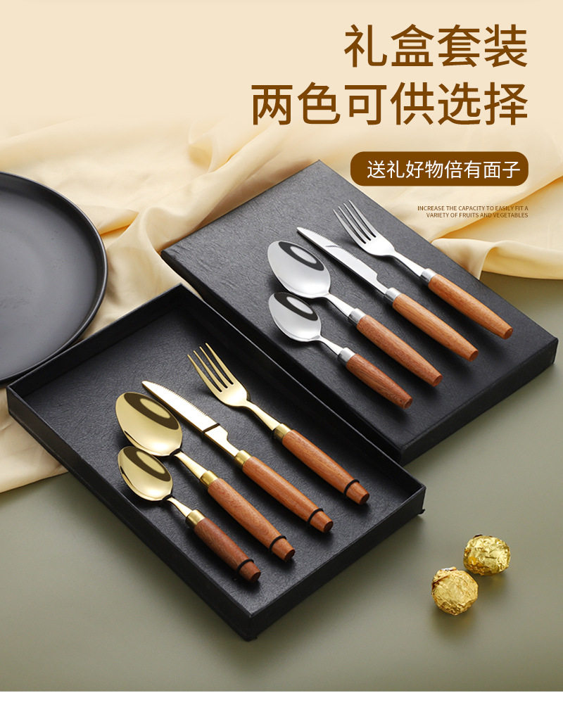 Cross-border 304 stainless steel knife, fork and spoon Japanese style ins wooden handle tableware Western food tableware set retro style logo