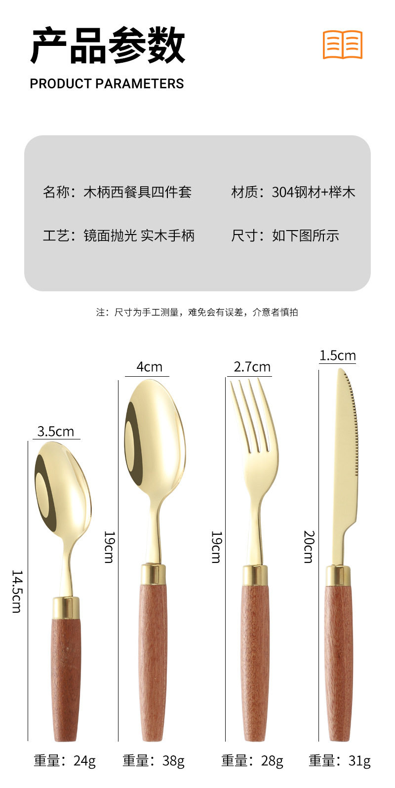 | Specifications | Knife and fork spoon small spoon |