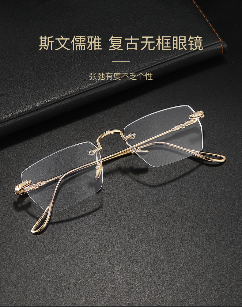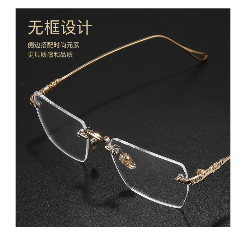 Ultra-light pure titanium gold silk rimless myopia glasses frame men's big face Phnom Penh Sven scum business rimless titanium frame