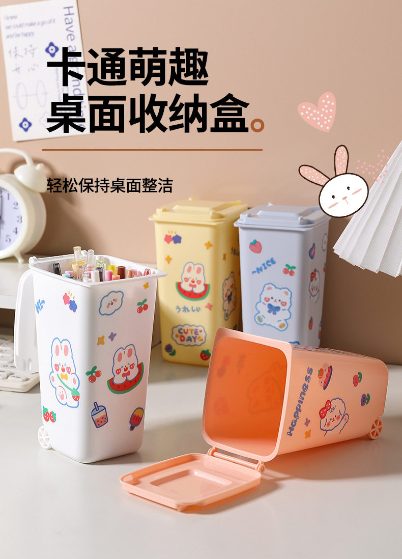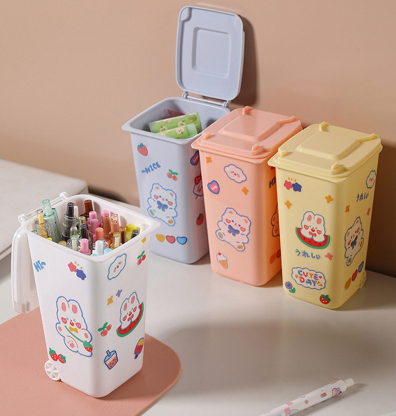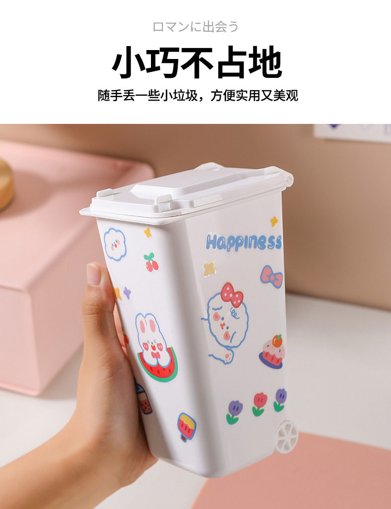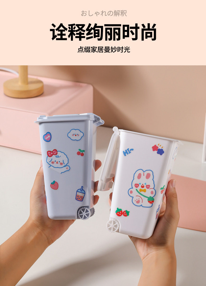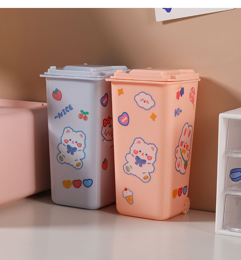 Desktop Small Trash Can Pen Holder Cute Cartoon Trumpet with Lid Creative Desk Paper Basket Household Storage Bucket