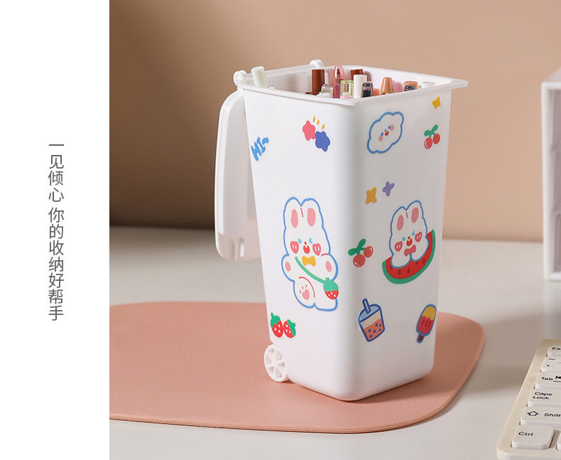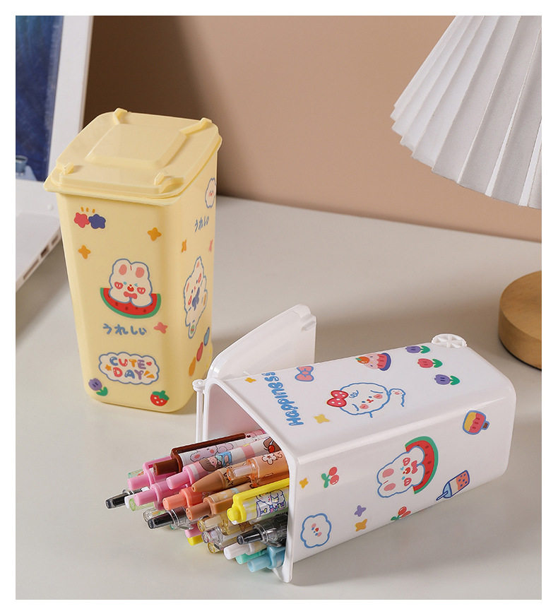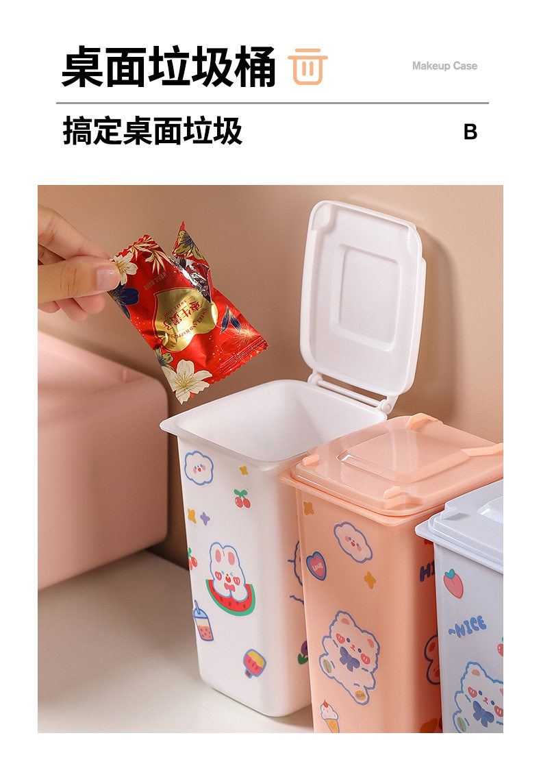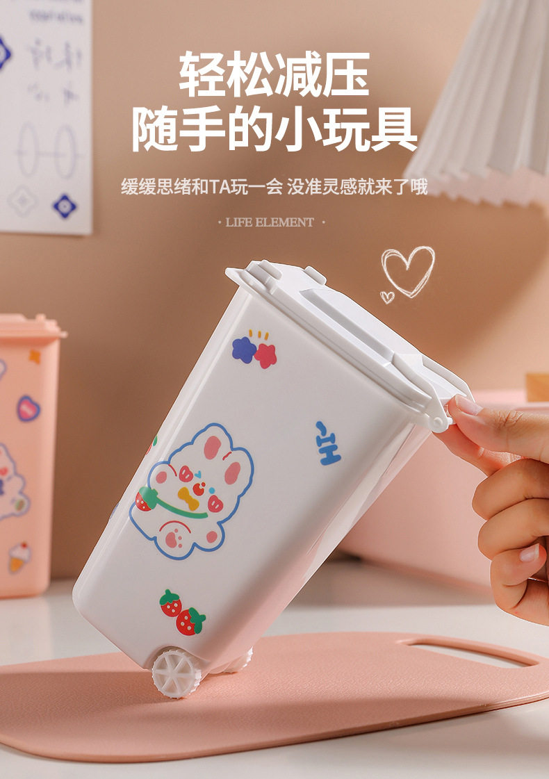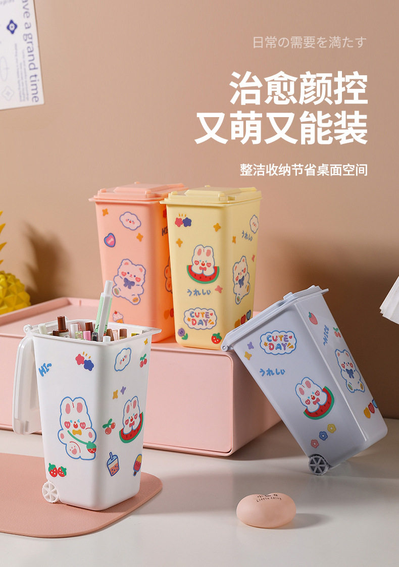 Desktop Small Trash Can Pen Holder Cute Cartoon Trumpet with Lid Creative Desk Paper Basket Household Storage Bucket