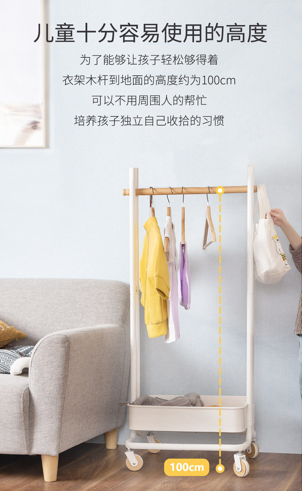 Household Small Children's Coat Rack Living Room Bedroom Floor-Standing Baby Hanger Children's Clothes Storage Rack