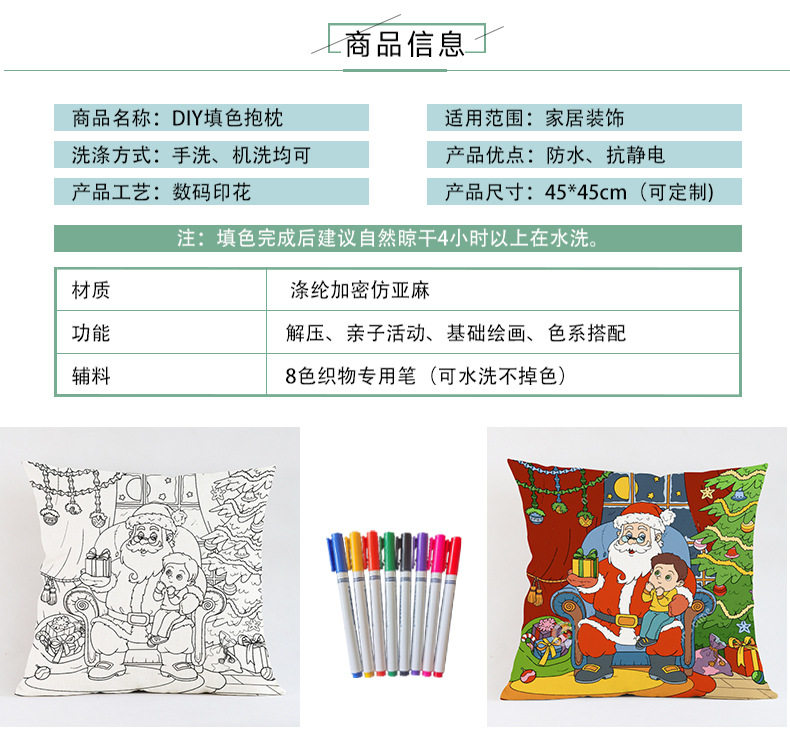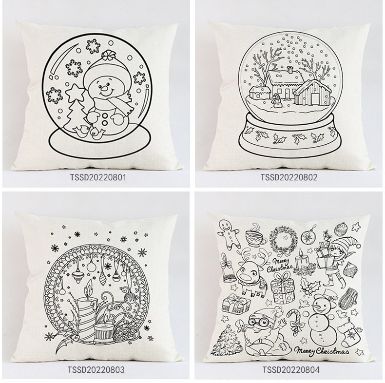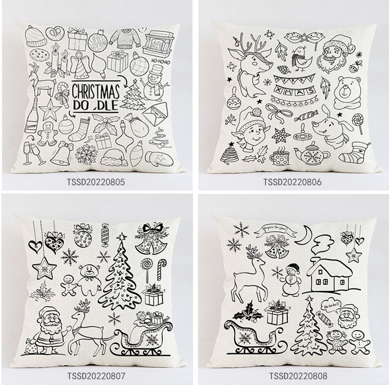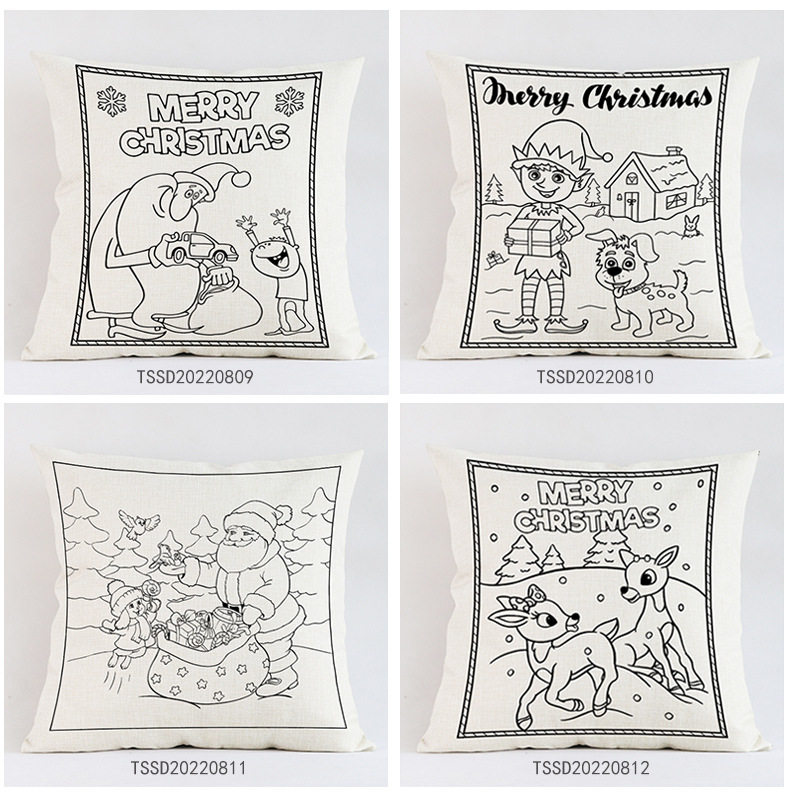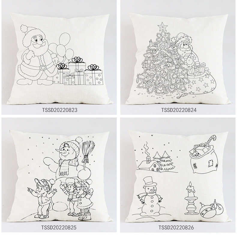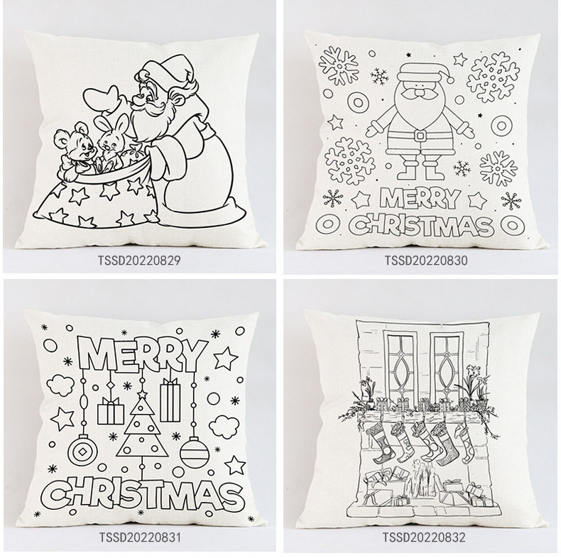New Christmas Pillow DIY Colorful Pillow Case Santa Claus Hand-painted Graffiti Pillow Cushion Painted Gift