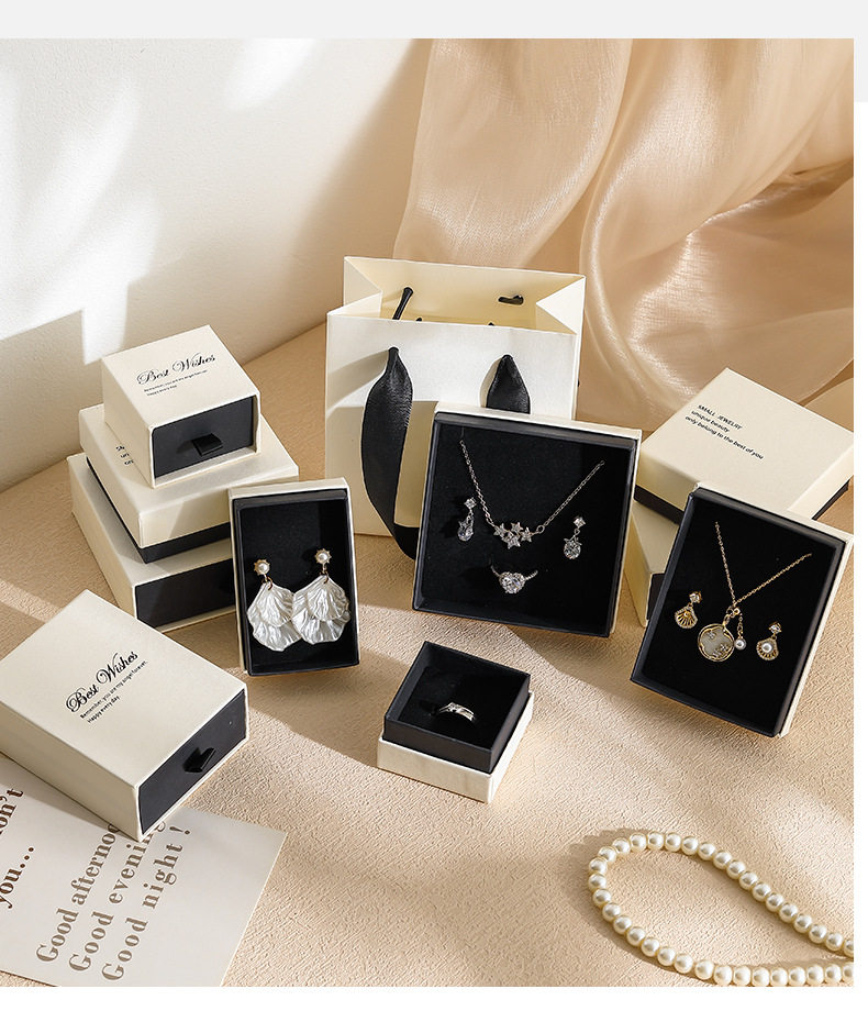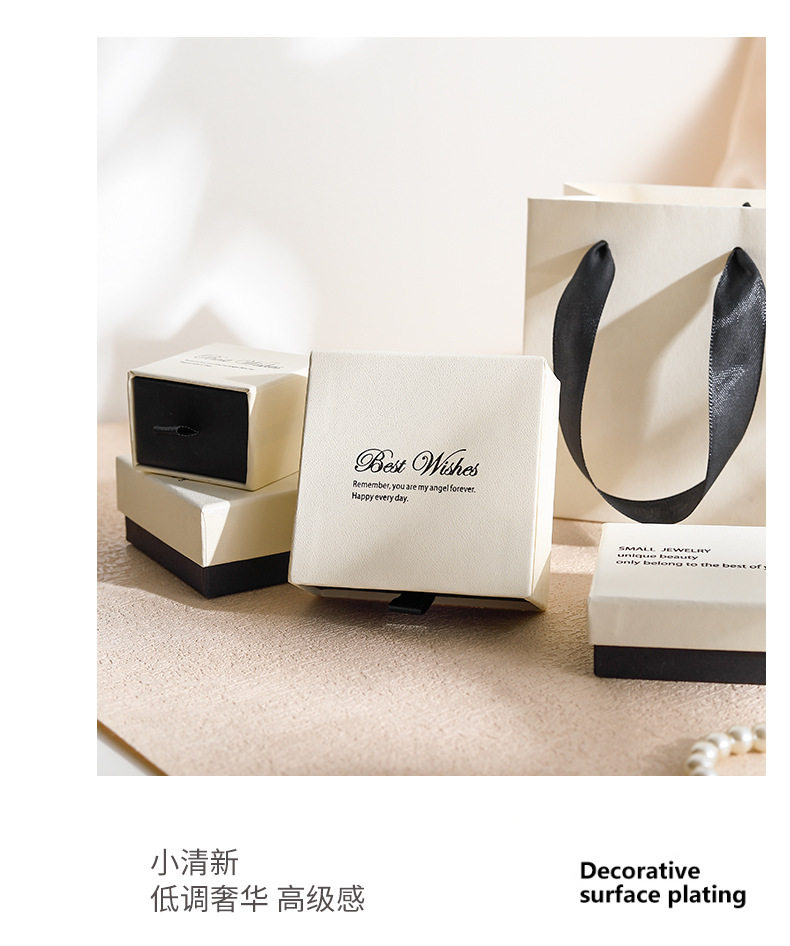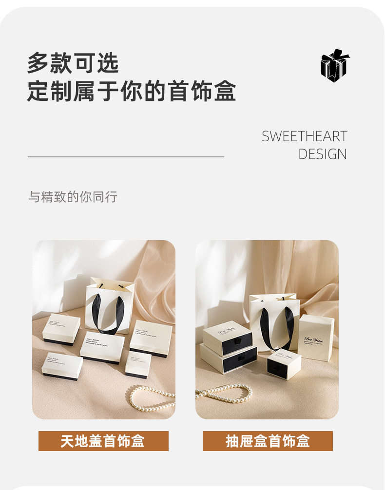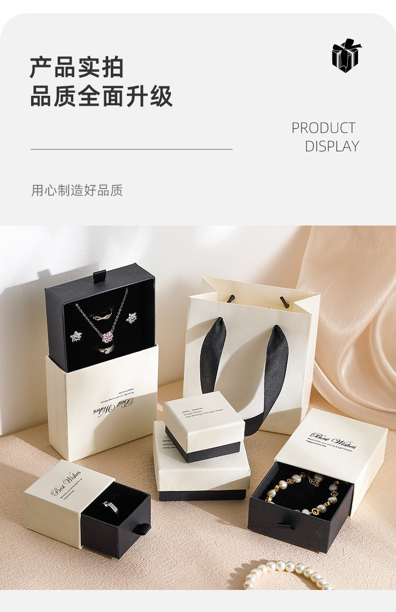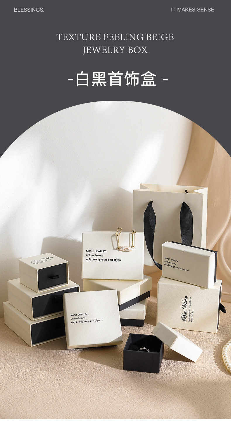 In stock wholesale exquisite ring box earrings jewelry packaging box necklace earrings simple white and black matching jewelry box