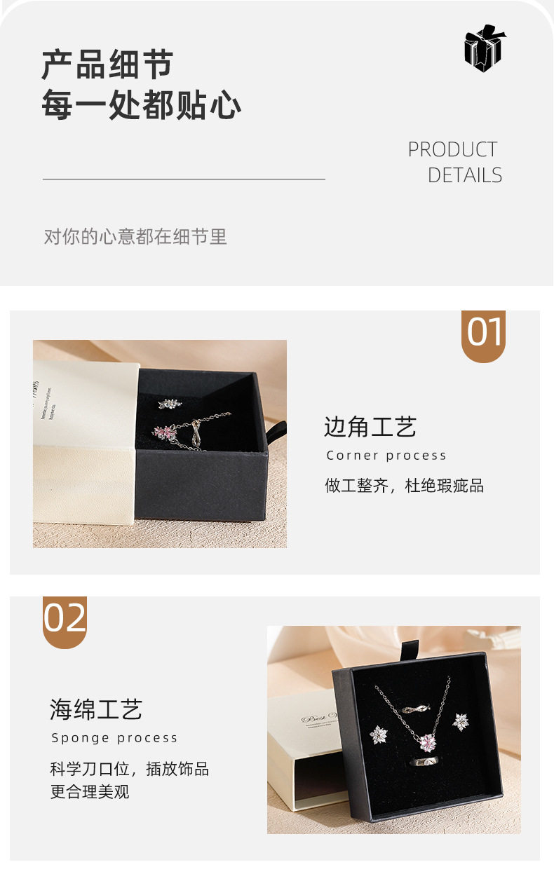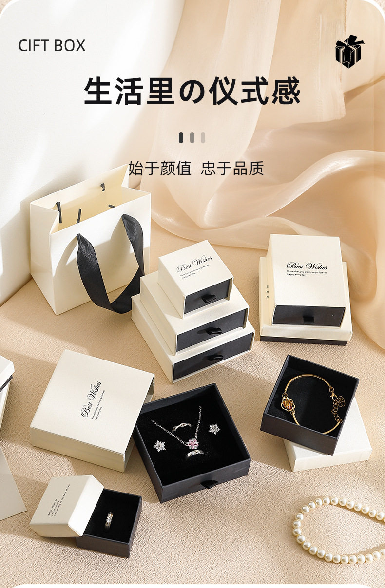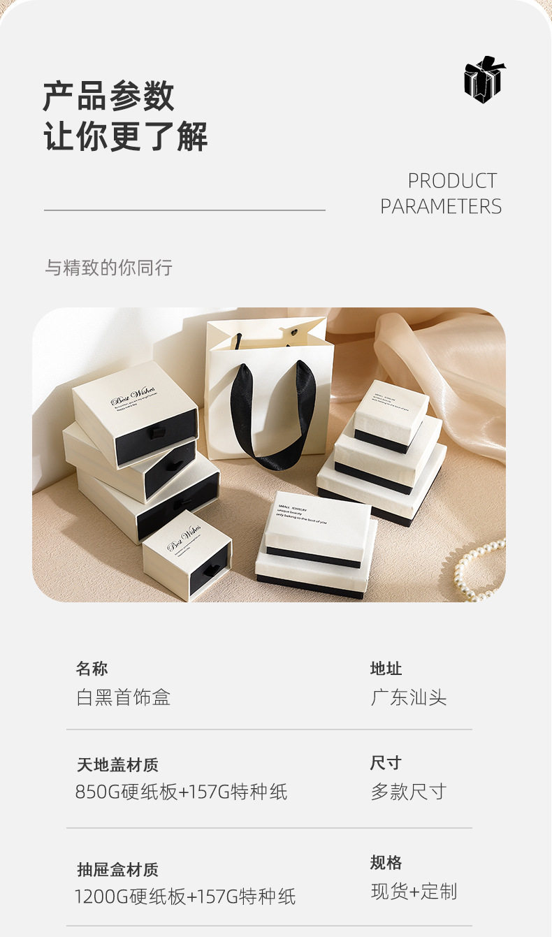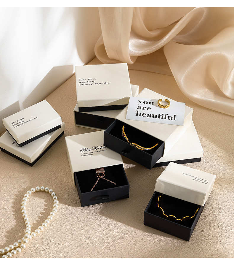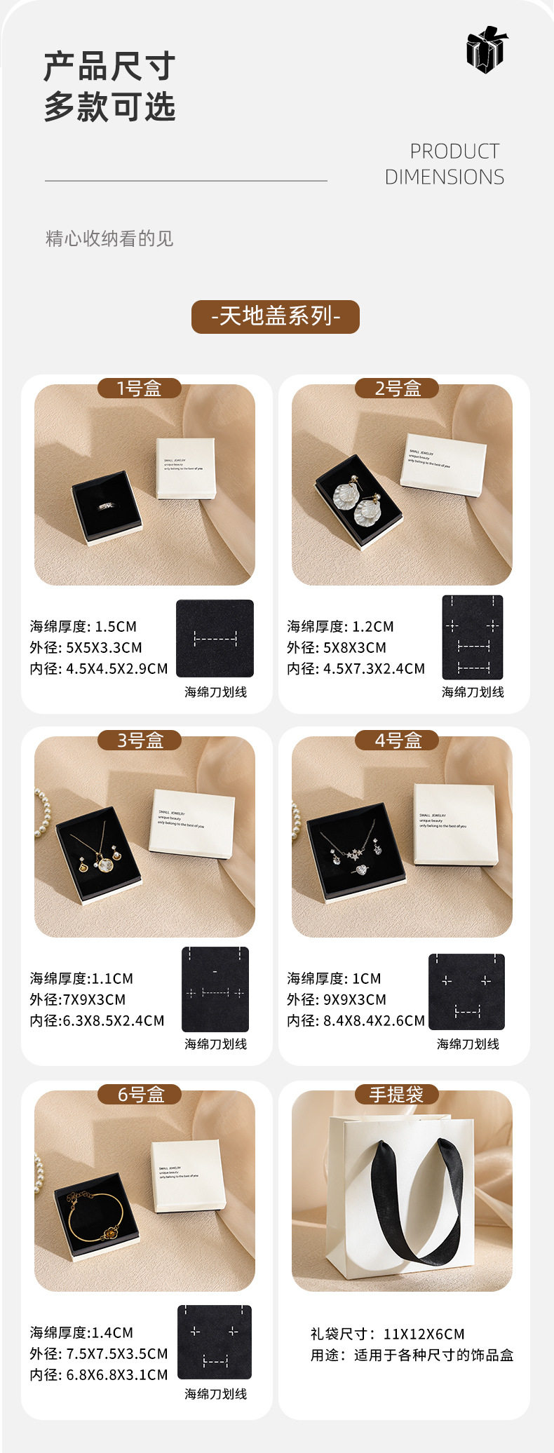 In stock wholesale exquisite ring box earrings jewelry packaging box necklace earrings simple white and black matching jewelry box