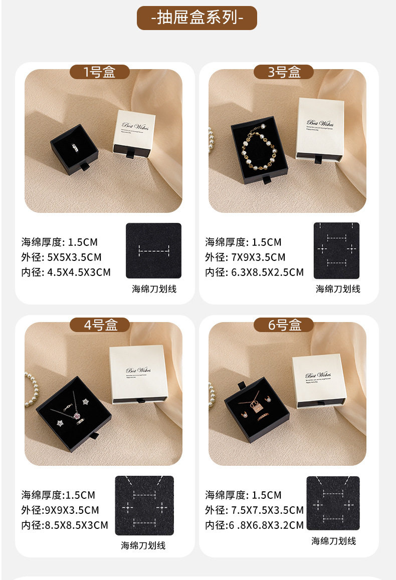 | Specification model | White and black day and night cover; no. 1 box 5*5*3cm (with sponge),White and black heaven and earth cover; box no. 2 5*8*2.8cm (with sponge),White and black day and night cover; box no. 3 7*9*3cm (with sponge),White and black heaven and earth cover; box no. 4 9*9*3cm (with sponge),White and black heaven and earth cover; blank version no. 5 heaven and earth cover 21*4.5*3.2 (with eva),White and black heaven and earth cover; box no. 6 7.5*7.5*3.5cm (with sponge),White and black heaven and earth cover; no. 10 box 11*11*3.8cm (with sponge),White and black heaven and earth cover; handbag 11*12*6cm,White and black drawer box; box no. 1 5*5*3.5 (with sponge),White and black drawer box; box no. 3 7*9*3.5 (with sponge),White and black drawer box; box no. 4 9*9*3.5 (with sponge),White and black drawer box; box no. 6 7.5*7.5*3.5cm (with sponge),White and black drawer box; handbag 11*12*6cm,White powder heaven and earth cover; no. 1 box 5*5*3cm (with sponge),White powder heaven and earth cover; box no. 2 5*8*2.8cm (with sponge),White powder heaven and earth cover; no. 3 box 7*9*3cm (with sponge),White powder heaven and earth cover; box no. 4 9*9*3cm (with sponge),White pink heaven and earth cover; blank version no. 5 heaven and earth cover 21*4.5*3.2 (with eva),White powder top and bottom cover; box no. 6 7.5*7.5*3.5cm (with sponge),White powder top and bottom cover; no. 10 box 11*11*3.8cm (with sponge),White powder top and bottom cover; handbag 11*12*6cm,Pearlescent heaven and earth cover; no. 1 box 5*5*3cm (with sponge),Pearlescent heaven and earth cover; box no. 2 5*8*2.8cm (with sponge),Pearlescent heaven and earth cover; box no. 3 7*9*3cm (with sponge),Pearlescent heaven and earth cover; box no. 4 9*9*3cm (with sponge),Pearlescent heaven and earth cover; box no. 6 7.5*7.5*3.5cm (with sponge),Pearlescent heaven and earth cover; no. 10 box 11*11*3.8cm (with sponge),Pearlescent heaven and earth cover; handbag 11*12*6cm,Hand-kneaded heaven and earth cover; no. 1 box 5*5*3cm (with sponge),Hand-kneaded heaven and earth cover; box no. 2 5*8*2.8cm (with sponge),Hand-kneaded heaven and earth cover; box no. 3 7*9*3cm (with sponge),Hand-kneaded heaven and earth cover; no. 4 box 9*9*3cm (with sponge),Hand-kneaded heaven and earth cover; no. 6 box 7.5*7.5*3.5cm (with sponge),Hand-kneaded heaven and earth cover; handbag 11*12*6cm,Black hands rub the earth and heaven; box no. 1 5*5*3cm (with sponge),Black hands rub the earth and heaven; box no. 2 5*8*2.8cm (with sponge),Black hands rub the earth and heaven; box no. 3 7*9*3cm (with sponge),Black hands rub the earth and heaven; box no. 4 9*9*3cm (with sponge),Black hands rub the earth and heaven; box no. 6 7.5*7.5*3.5cm (with sponge),Black hands rub the earth and heaven; handbag 11*12*6cm |