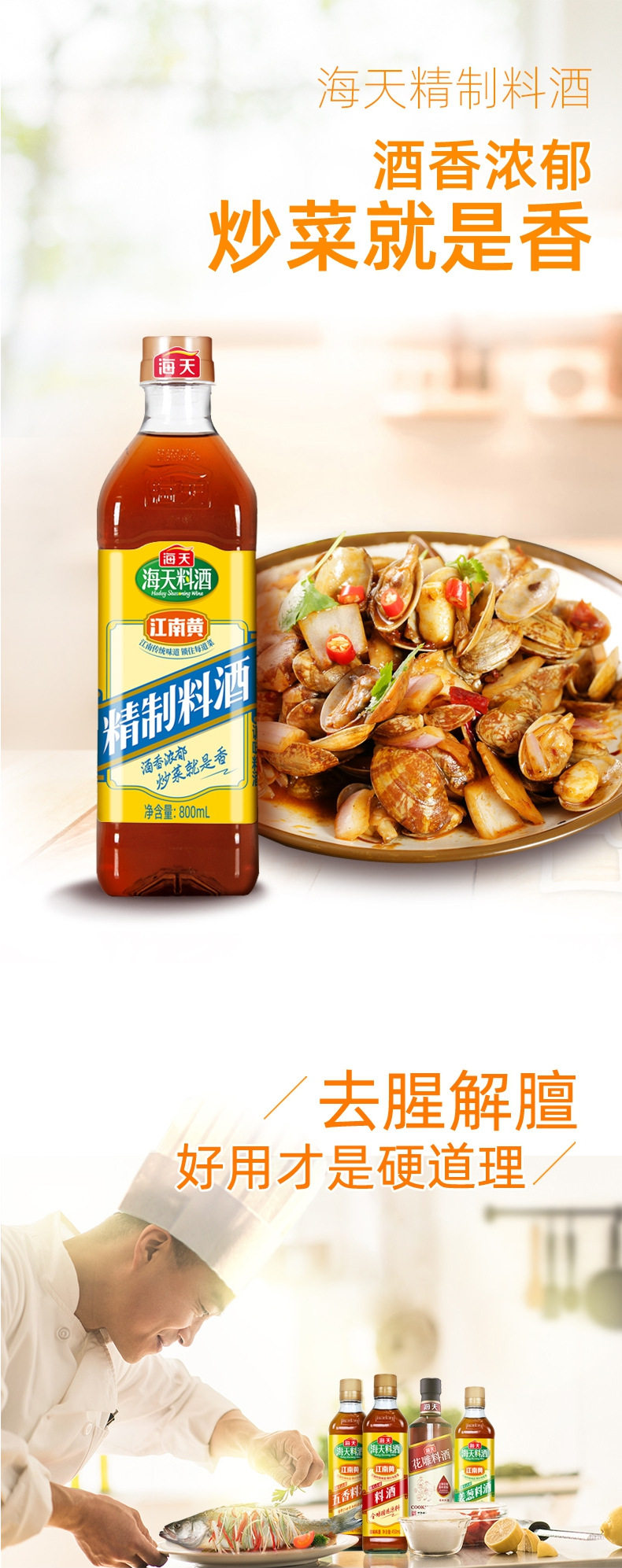 Sea Sky cooking wine refined cooking wine 800ml household yellow wine deodorant pickled fish kitchen seasoning cooking seasoning Jiangnan yellow