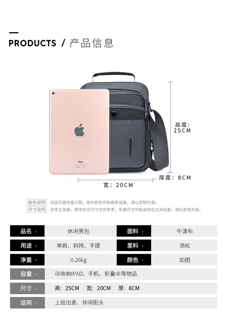 Crossbody Bag Men's Casual Oxford Cloth Men's Bag Waterproof Shoulder Bag Handbag Canvas Bag Wallet Men's Wholesale