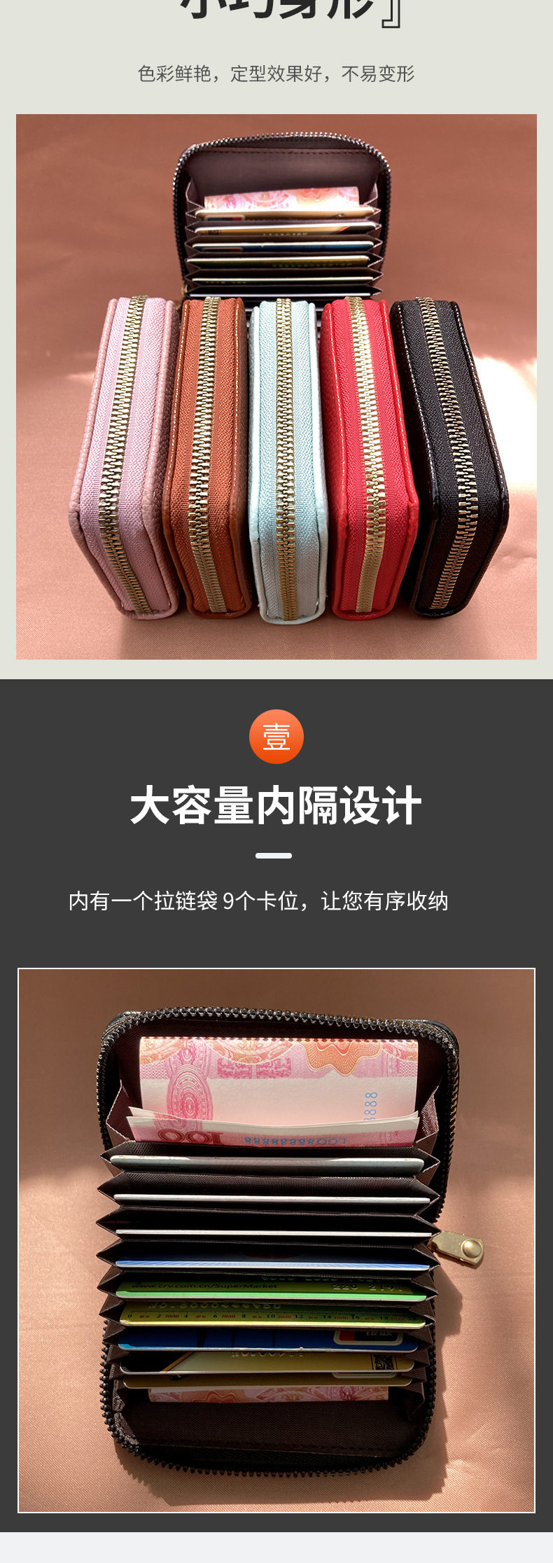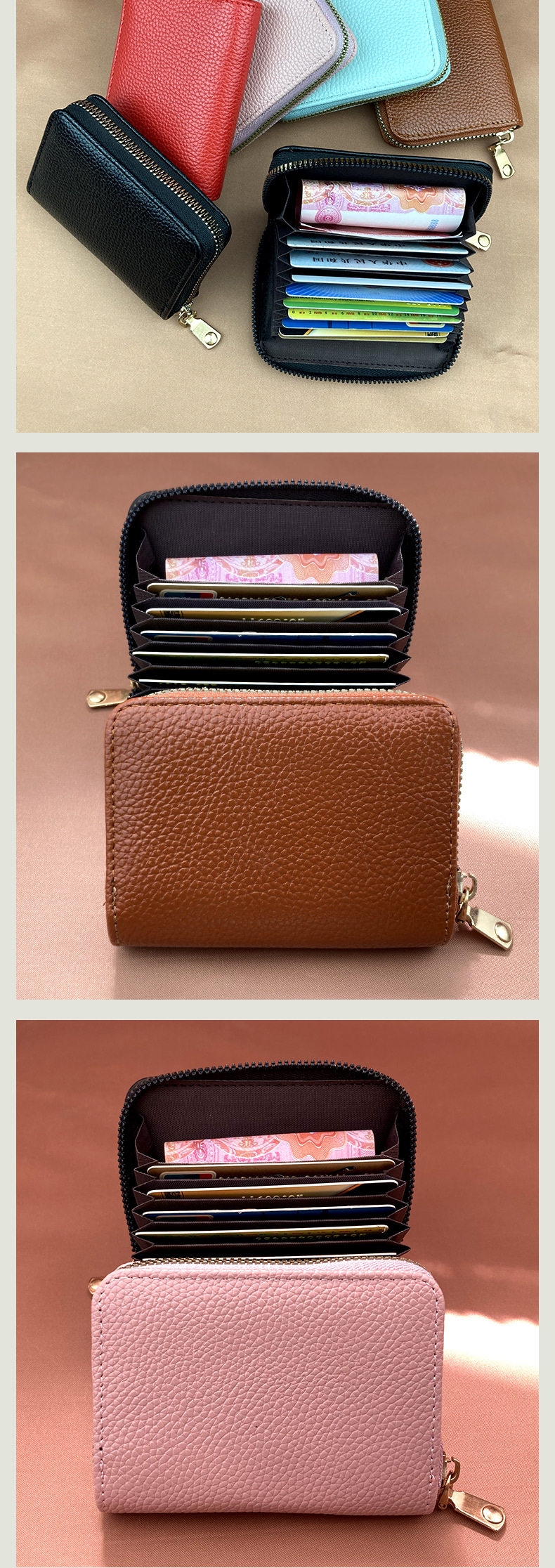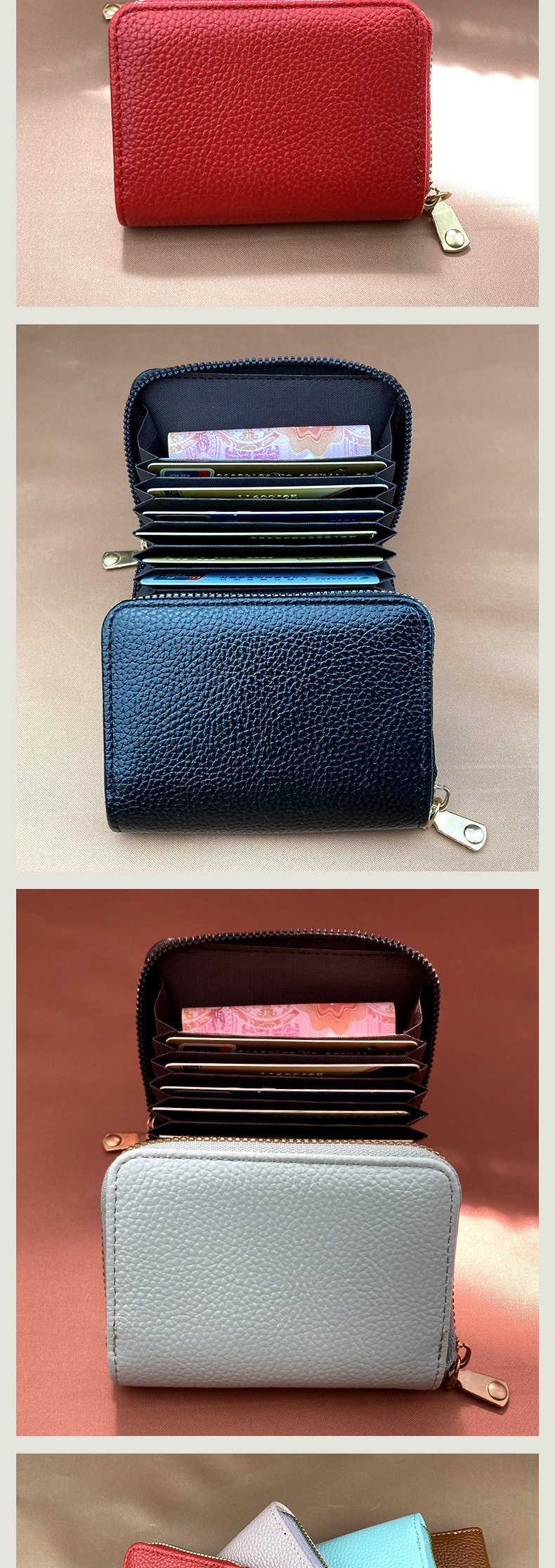 Hand-Held Lychee-Patterned 9-Card Holder, Large Capacity for Bank Cards and Credit Cards, Compact Accordion-Style Card Holder for Women, Urban Minimalist Style