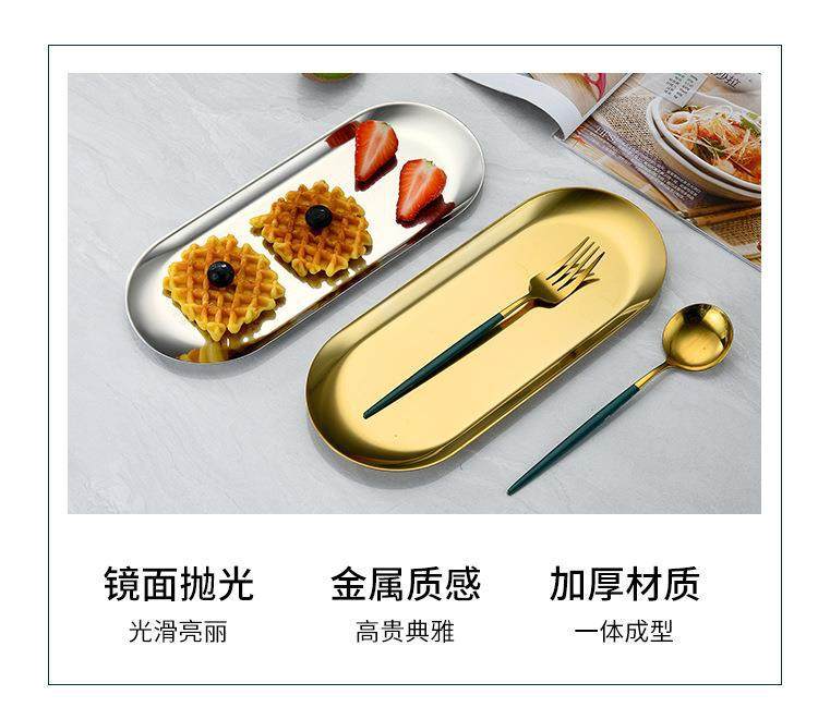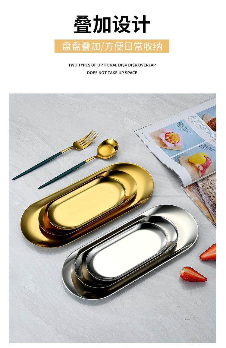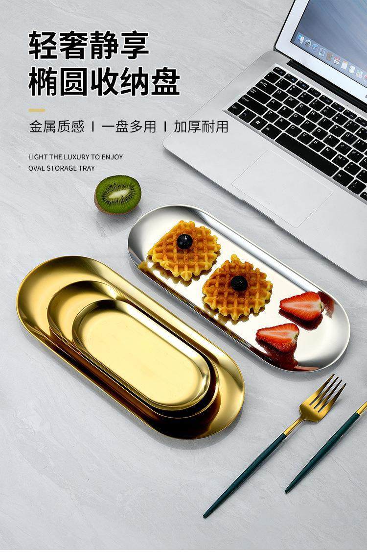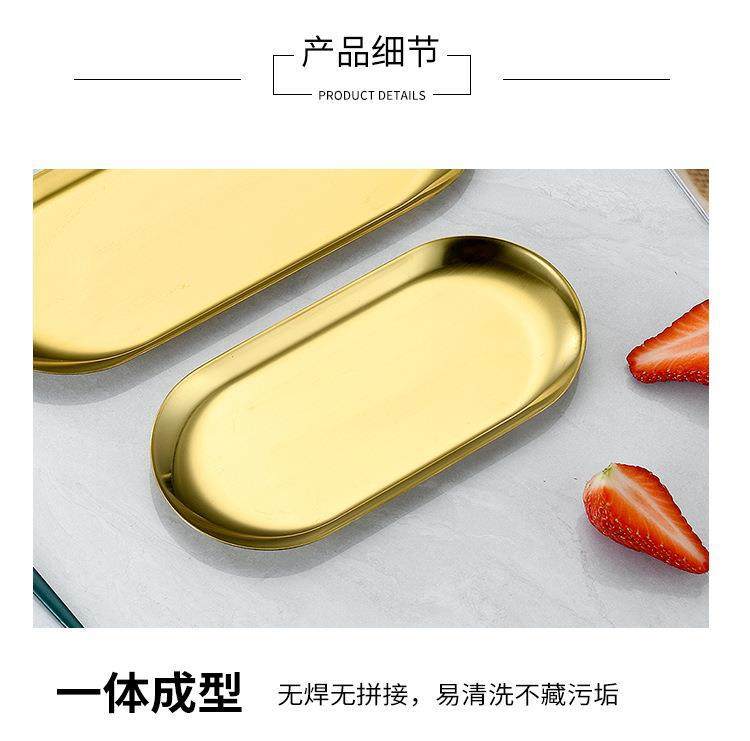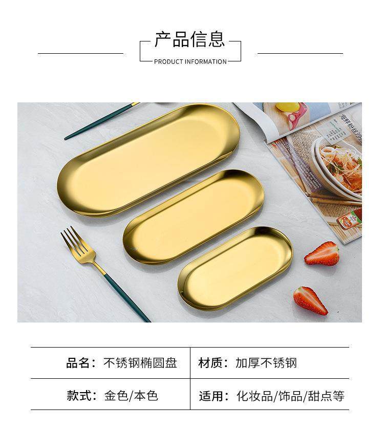 Nordic ins Plate Stainless Steel Oval Plate Golden Tray Western Dim Sum Jewelry Storage Metal Plate Cross-Border