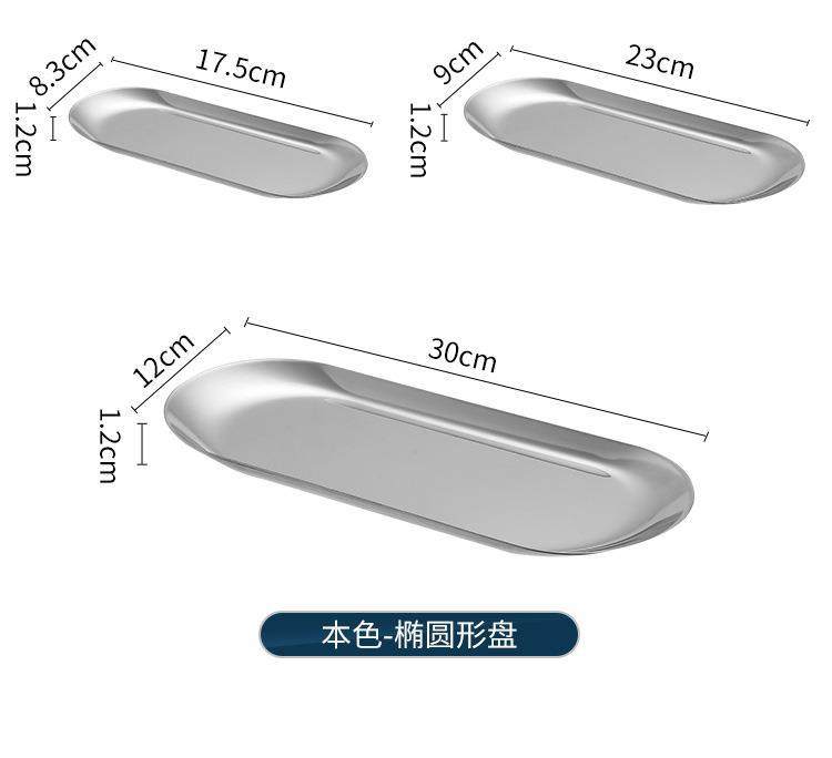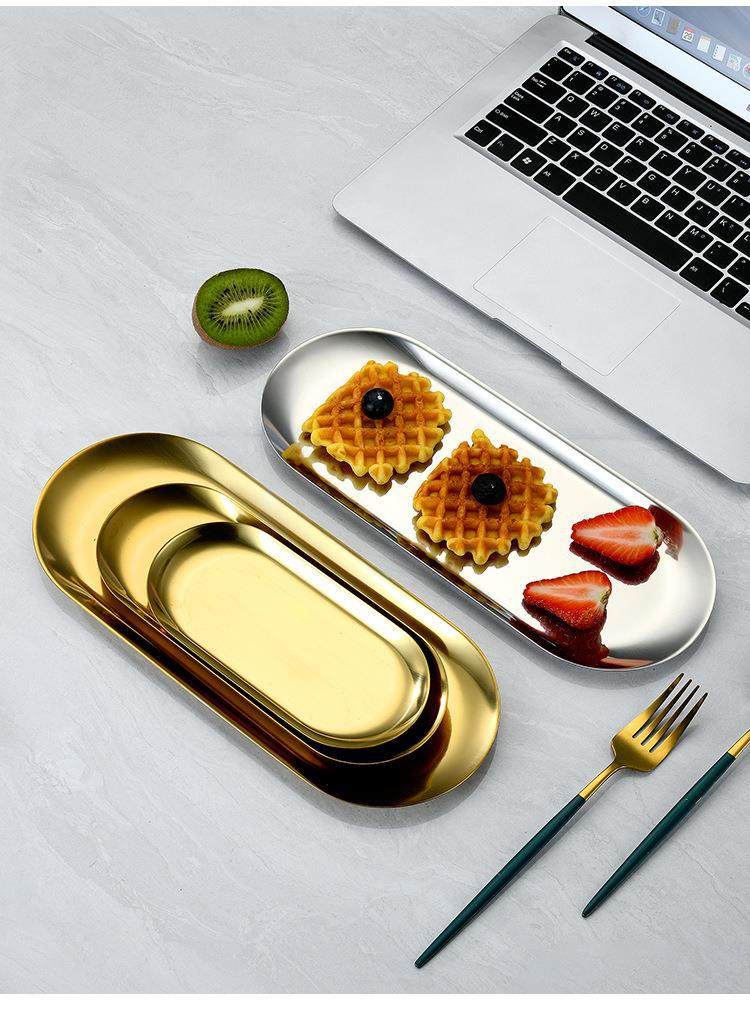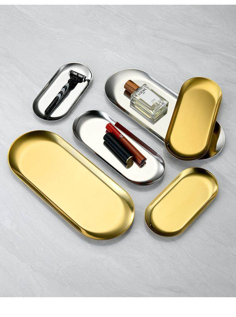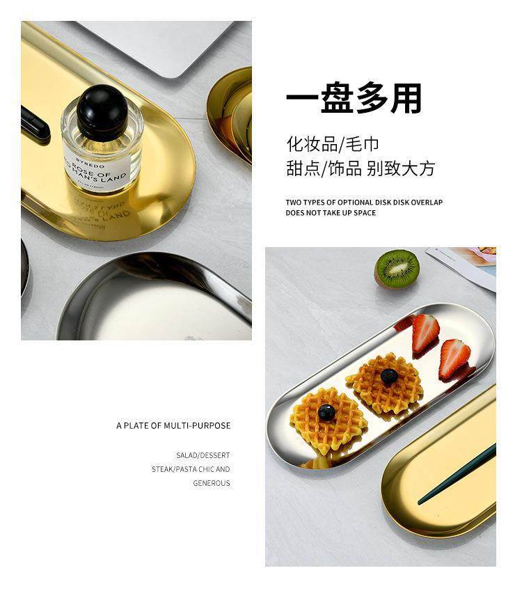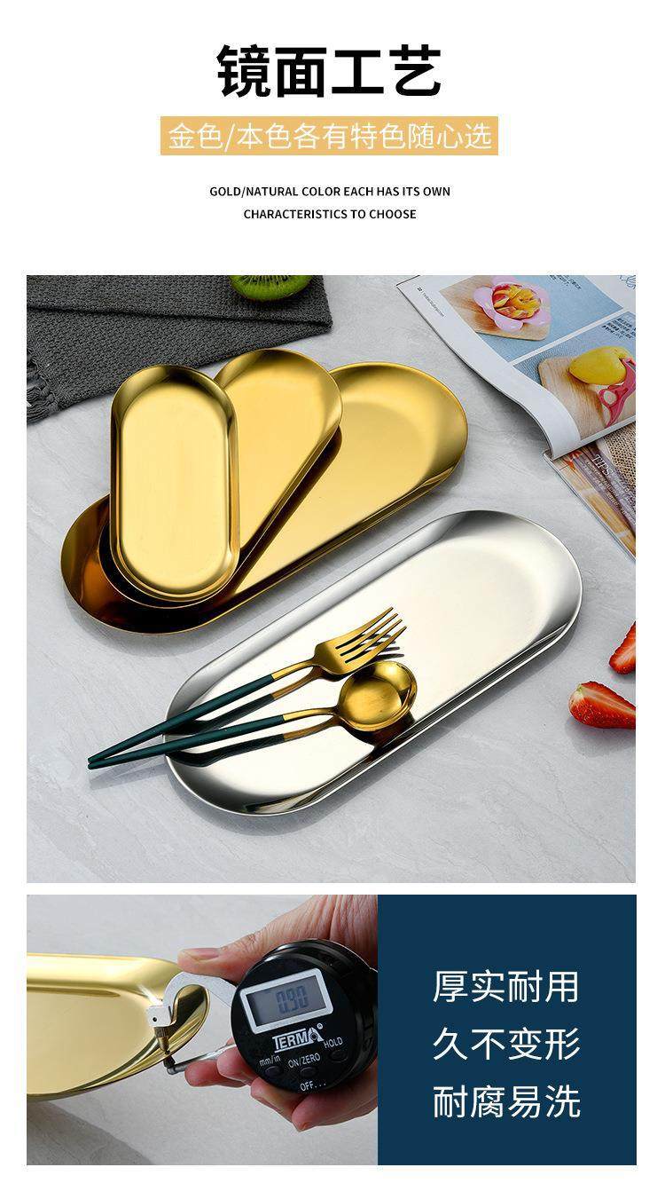 Nordic ins Plate Stainless Steel Oval Plate Golden Tray Western Dim Sum Jewelry Storage Metal Plate Cross-Border
