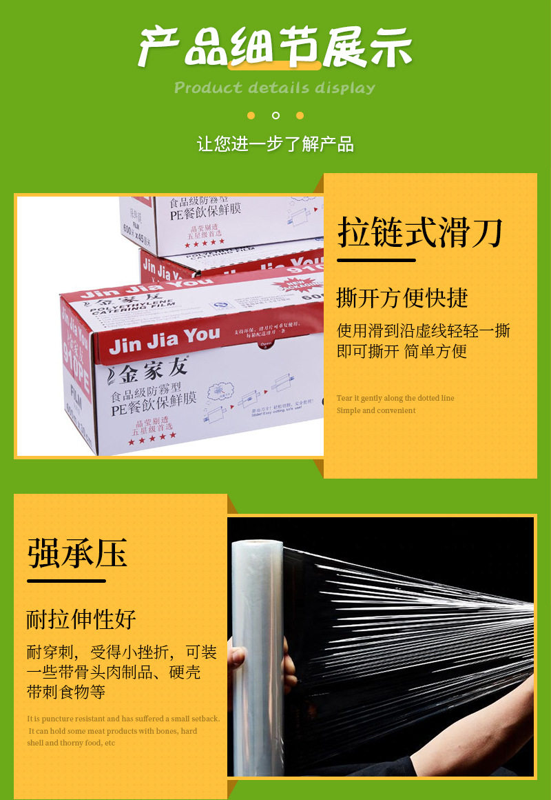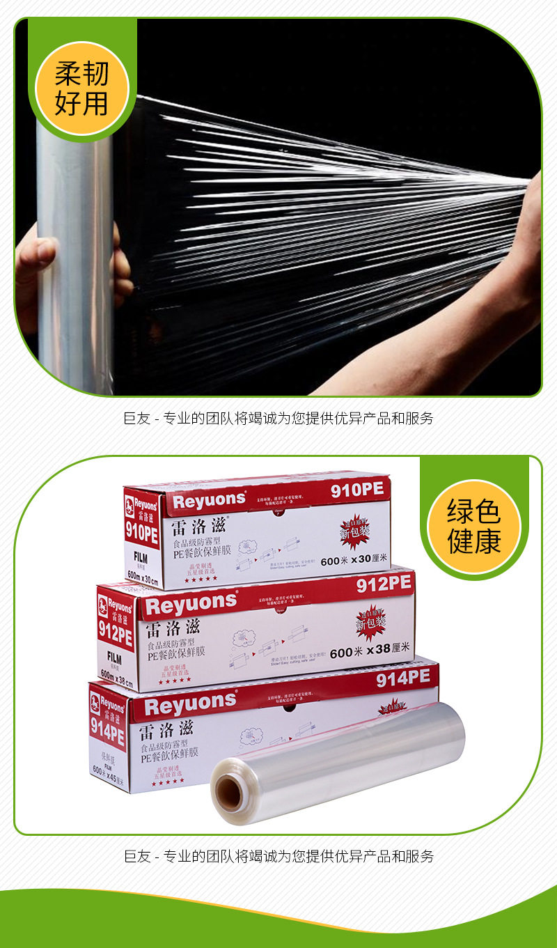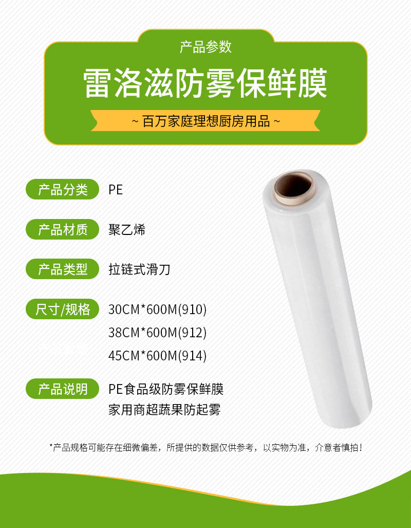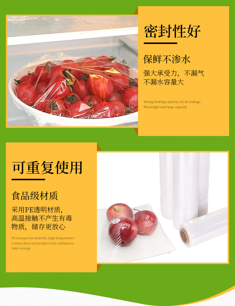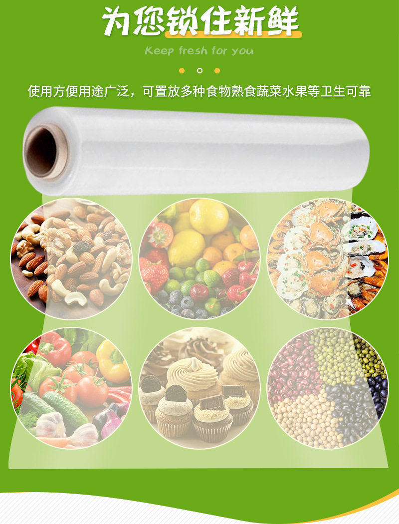 Large Roll Film 600m Household Supermarket Vegetable and Fruit Food Packaging Anti-Fogging and High Temperature Resistant Pe Food Grade Cling Film Wholesale