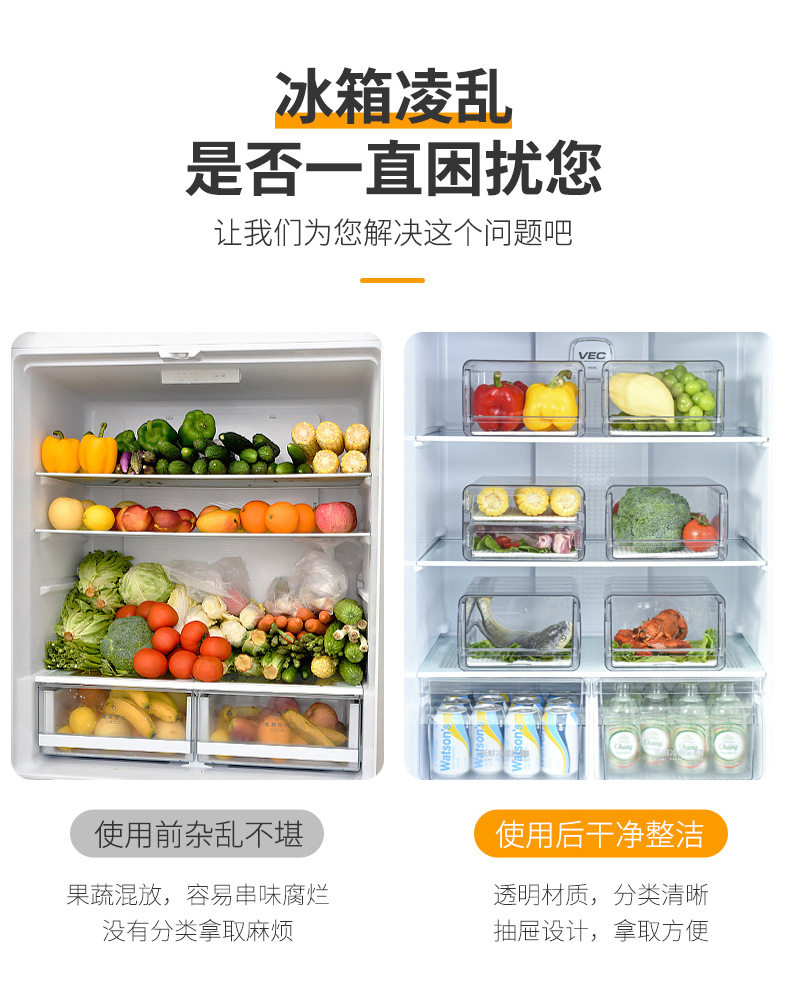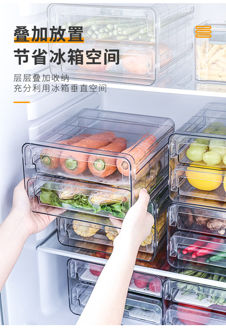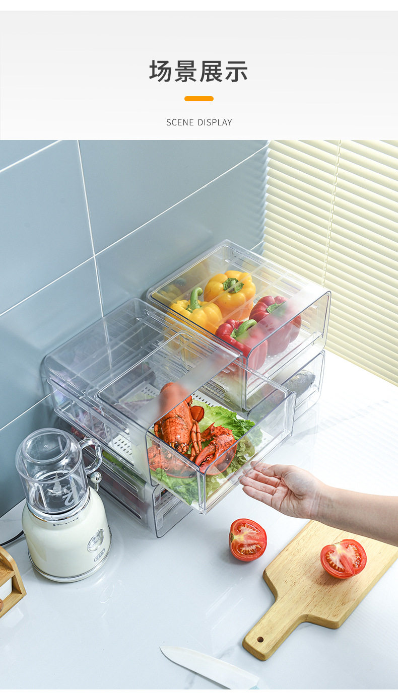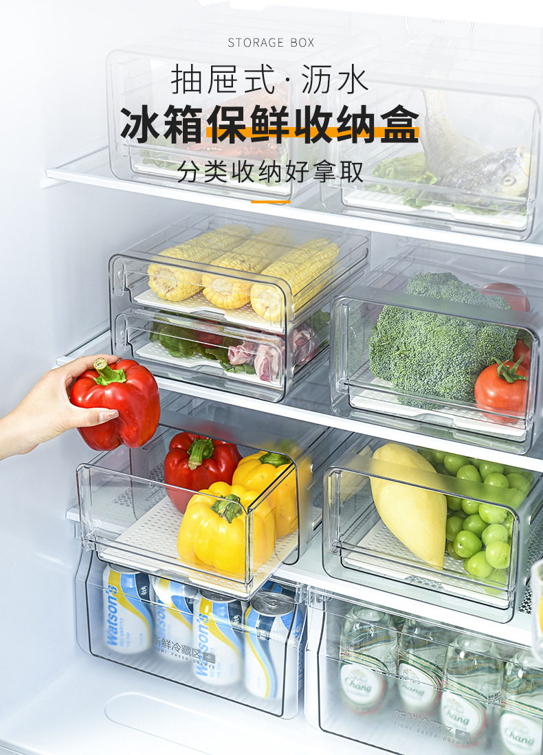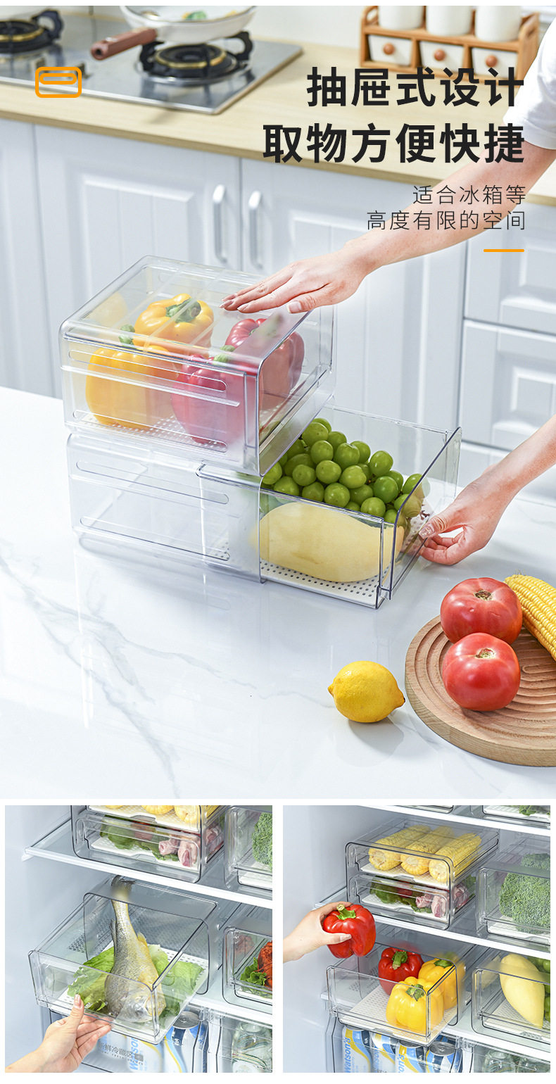 Manufacturer Wholesale Kitchen Food Refrigerator Crisper Fruit and Vegetable Draining Plastic Storage with Lid Pet Refrigerator Crisper