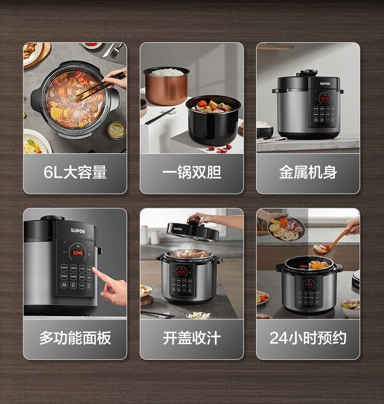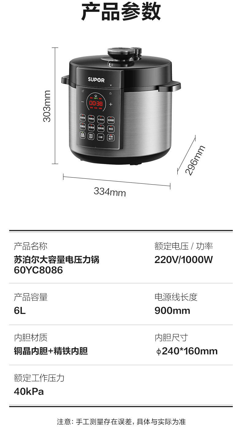 Supor electric pressure cooker pressure cooker household 6-liter rice cooker rice cooker intelligent multifunctional SY-60YC8086