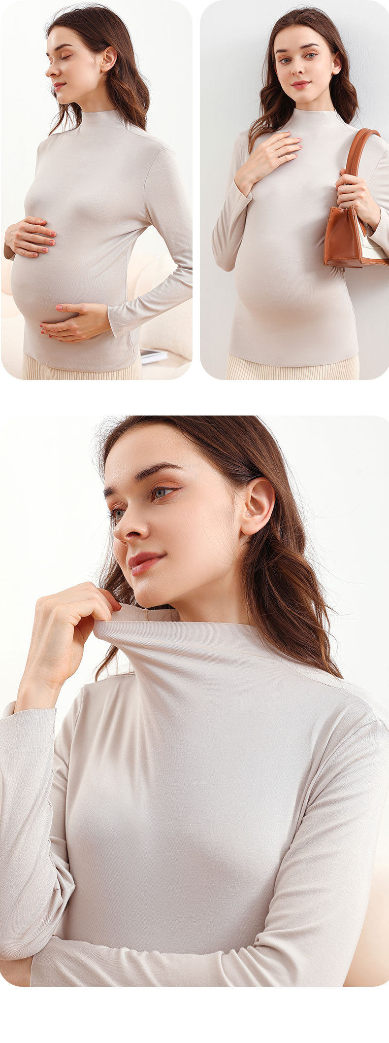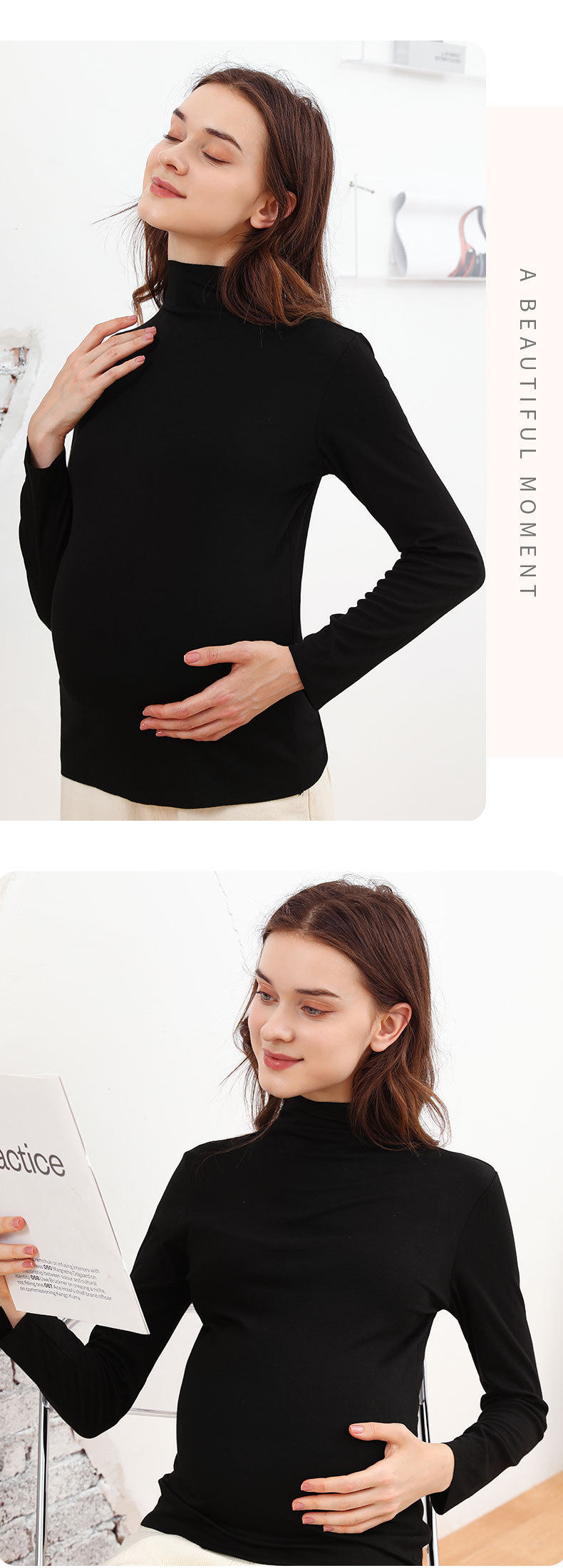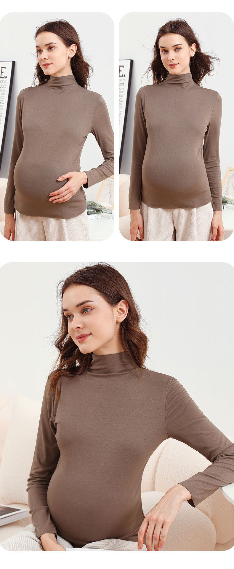 Pregnant Women's Base Shirt Spring and Autumn Half-high Collar Autumn and Winter Long-sleeved Modal T-shirt Women's Fashion Maternity Top