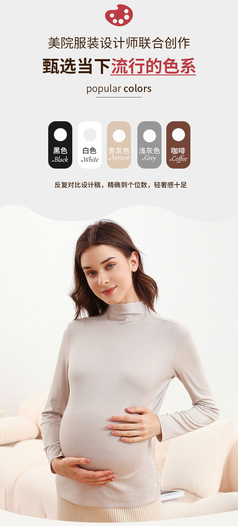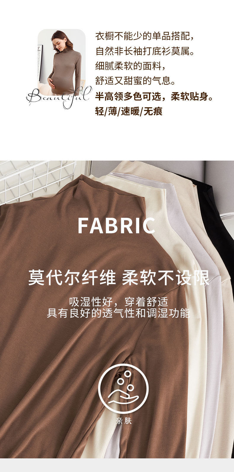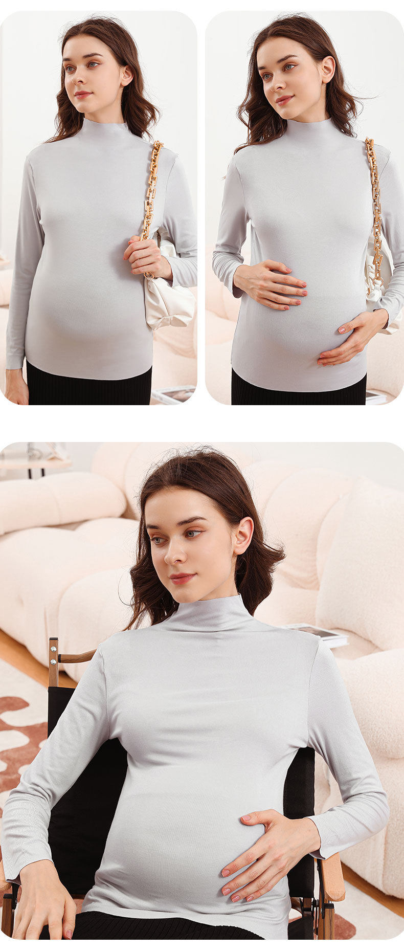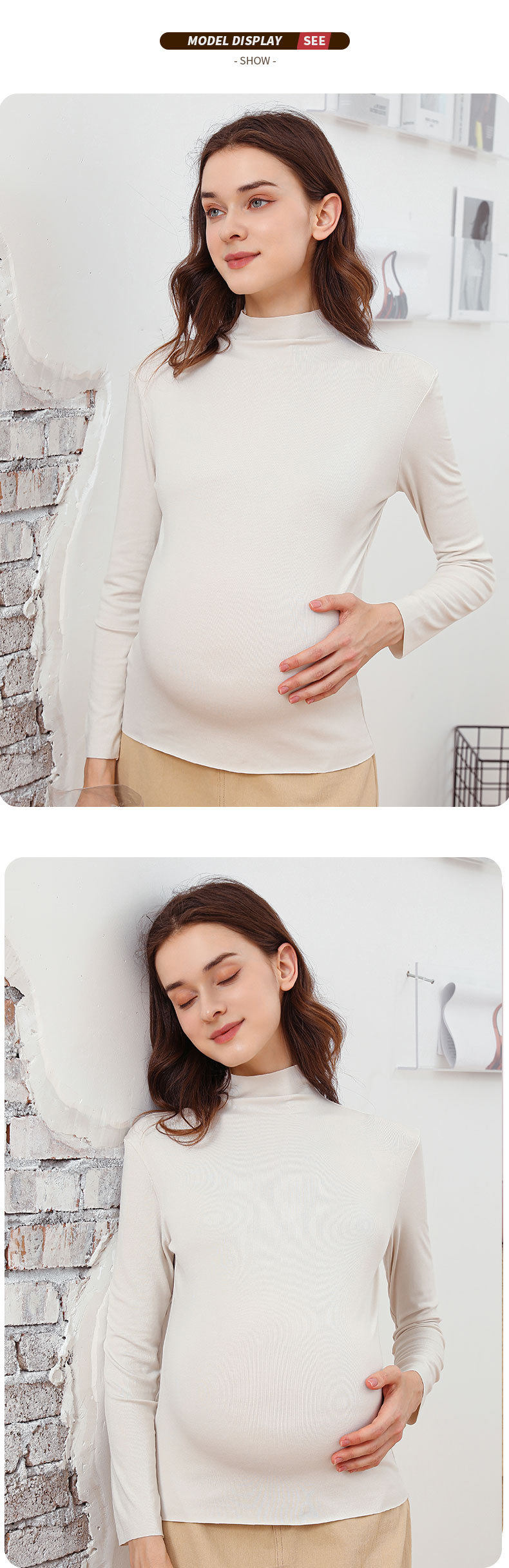 Pregnant Women's Base Shirt Spring and Autumn Half-high Collar Autumn and Winter Long-sleeved Modal T-shirt Women's Fashion Maternity Top