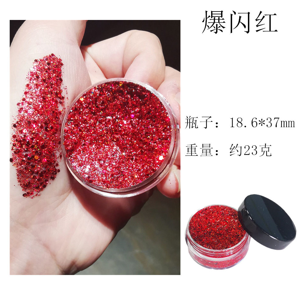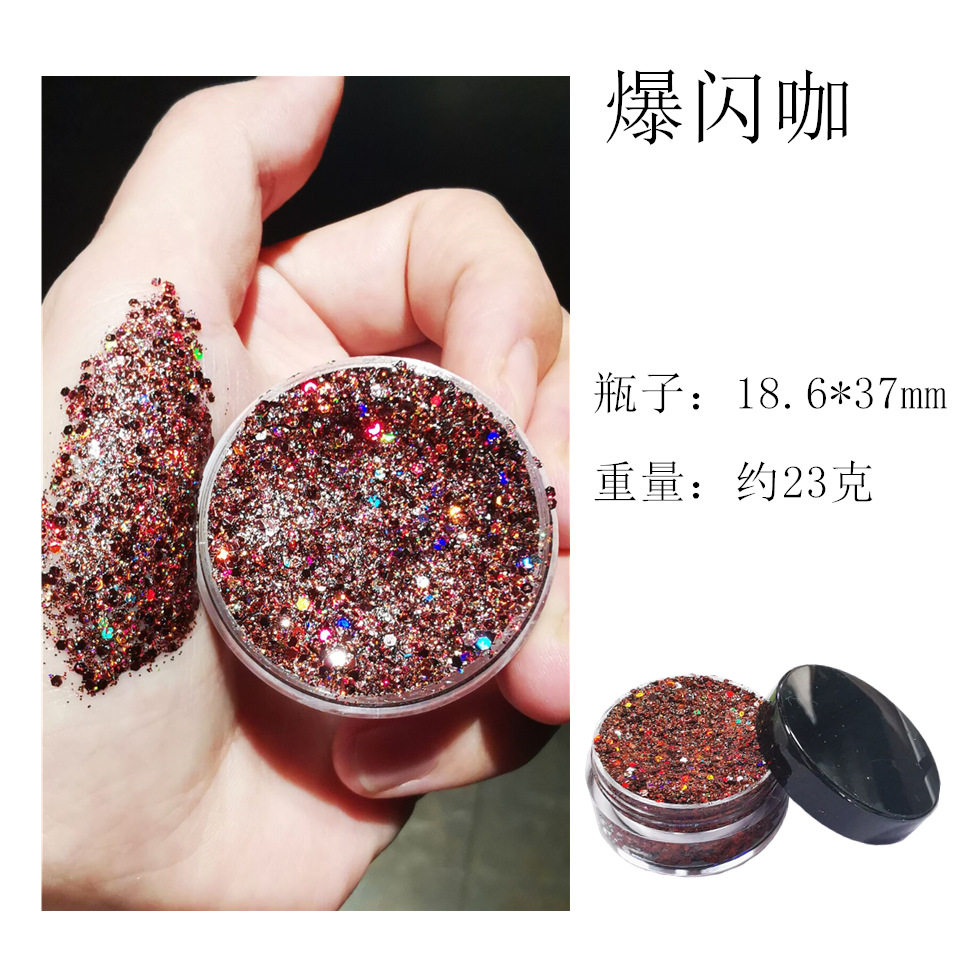 | Specification | Flash white (comes with cotton swab),Explosive gold (comes with cotton swab),Explosive silver (comes with cotton swab),Flash powder (cotton swab included),Flash light green (cotton swab included),Flash red (comes with cotton swab),Flash light purple (cotton swab included),Explosive rose red (comes with cotton swab),Explosive dark powder (cotton swab included),Explosive green blue (comes with cotton swab),Flash dark blue (comes with cotton swab),Flash purple (comes with cotton swab),Flash green (comes with cotton swab),Explosive coffee (comes with cotton swab),Flash black (comes with cotton swab),Flash light copper (cotton swab included) |
