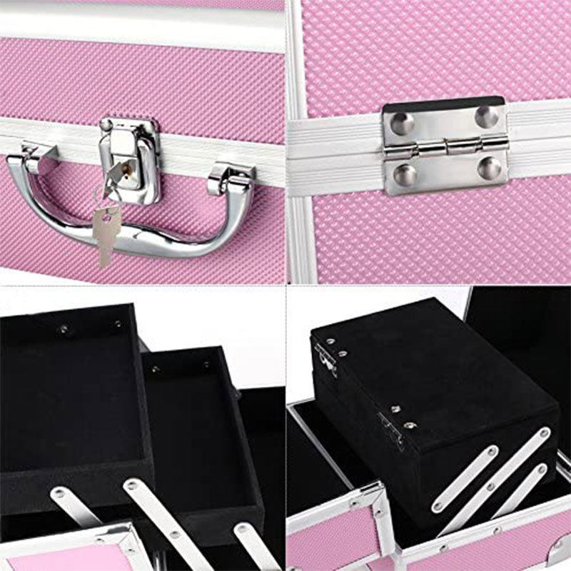 Cosmetic Case Portable Aluminum Alloy Storage Case Large Capacity with Mirror Professional Makeup Follower Portable Multi-layer Small Toolbox