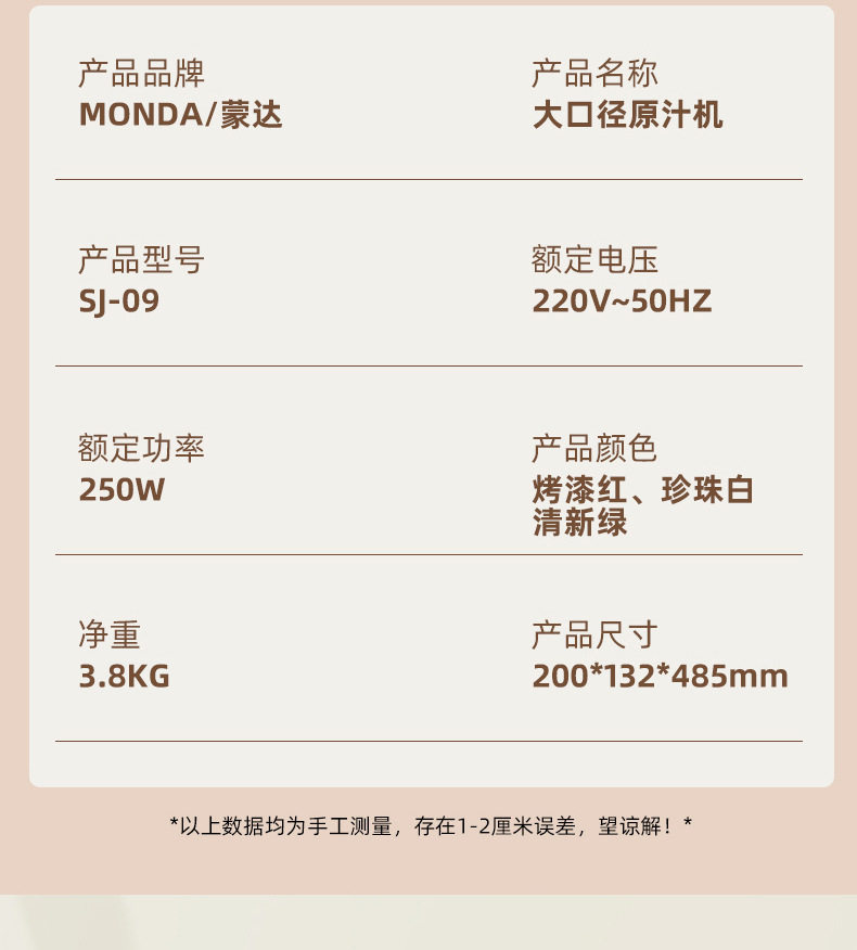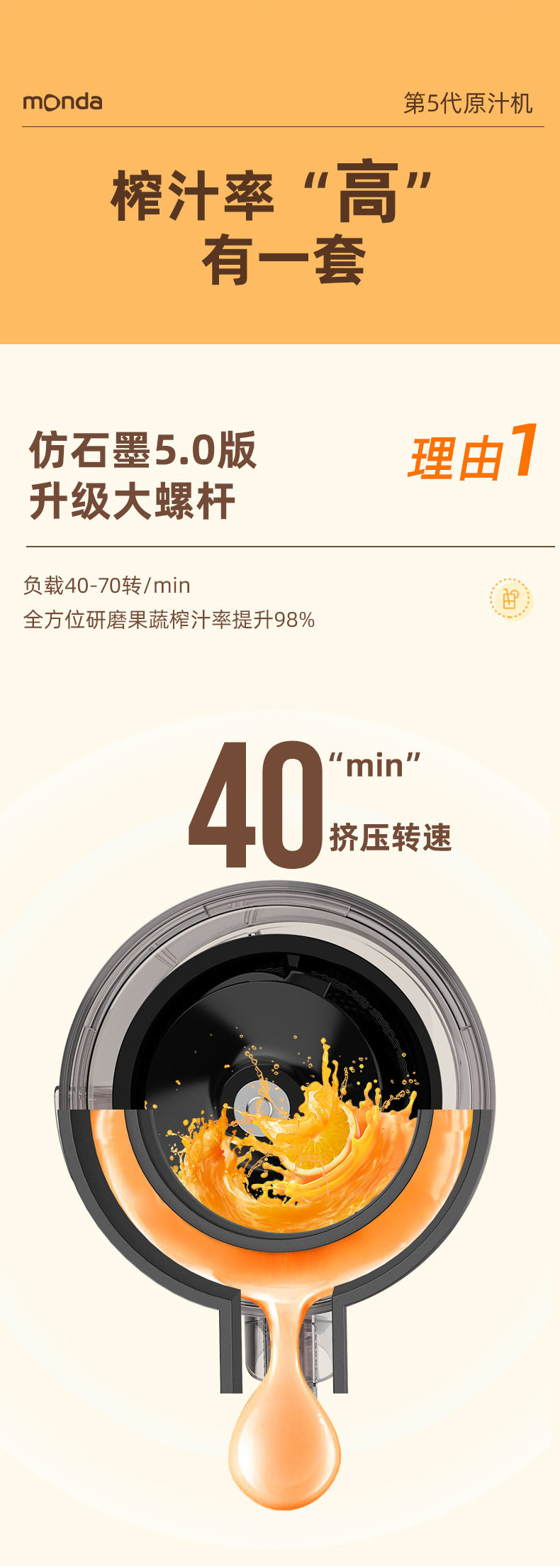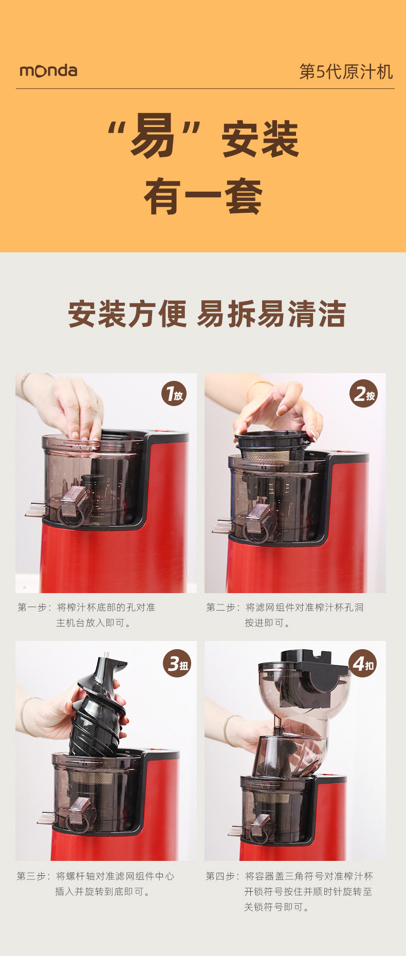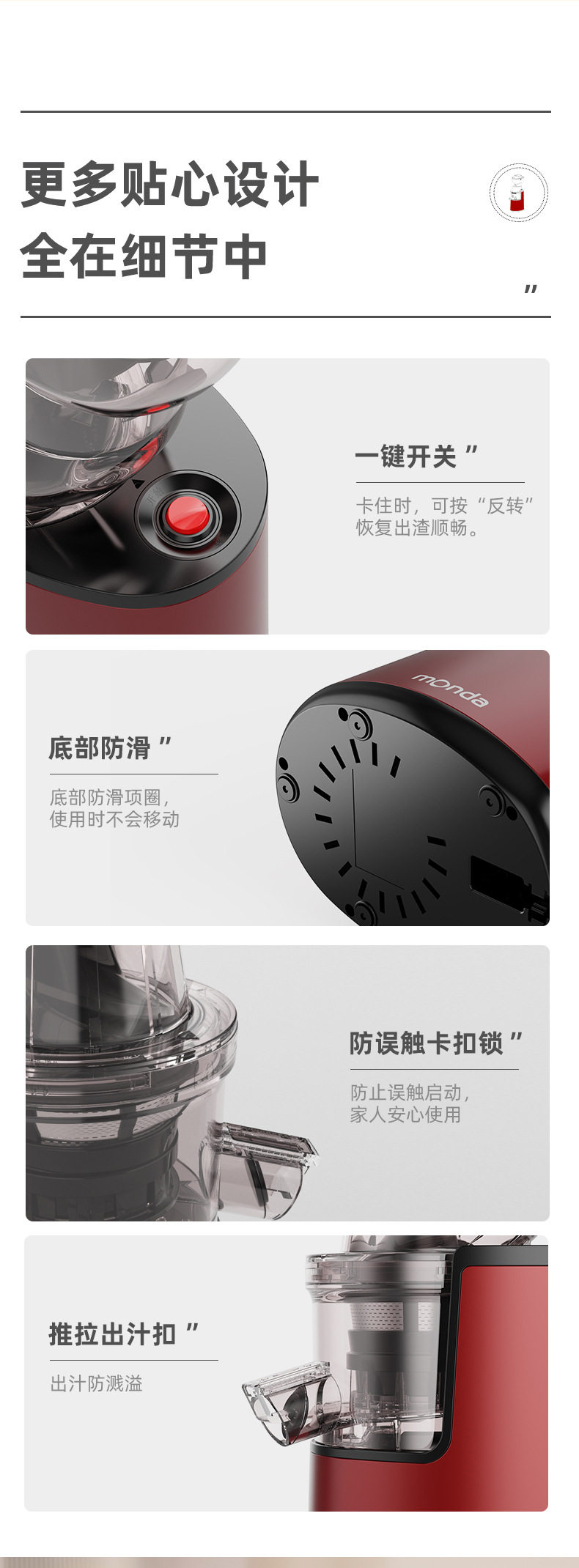 monda Monda Juicer Convenient Household Multifunctional Slag Juice Separation Large Diameter Fresh Juice Juicer