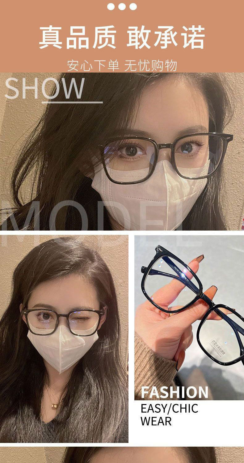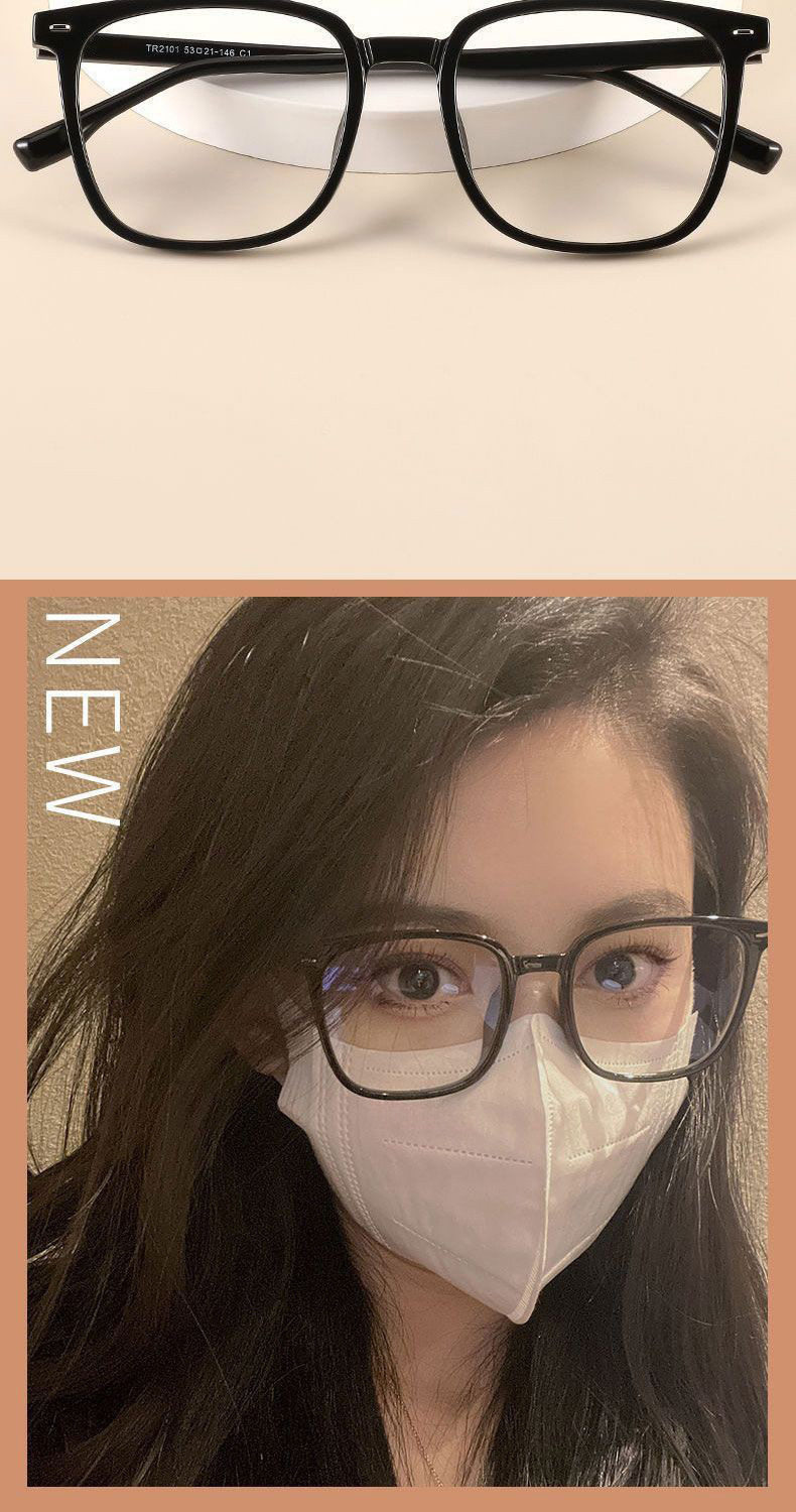 Black-Framed Glasses for Men, Ultra-Light Square-Frame Myopia, Can Be Equipped with Prescription, Universal, Large-Face Frosted Flat Glasses Frames for Trendy Women