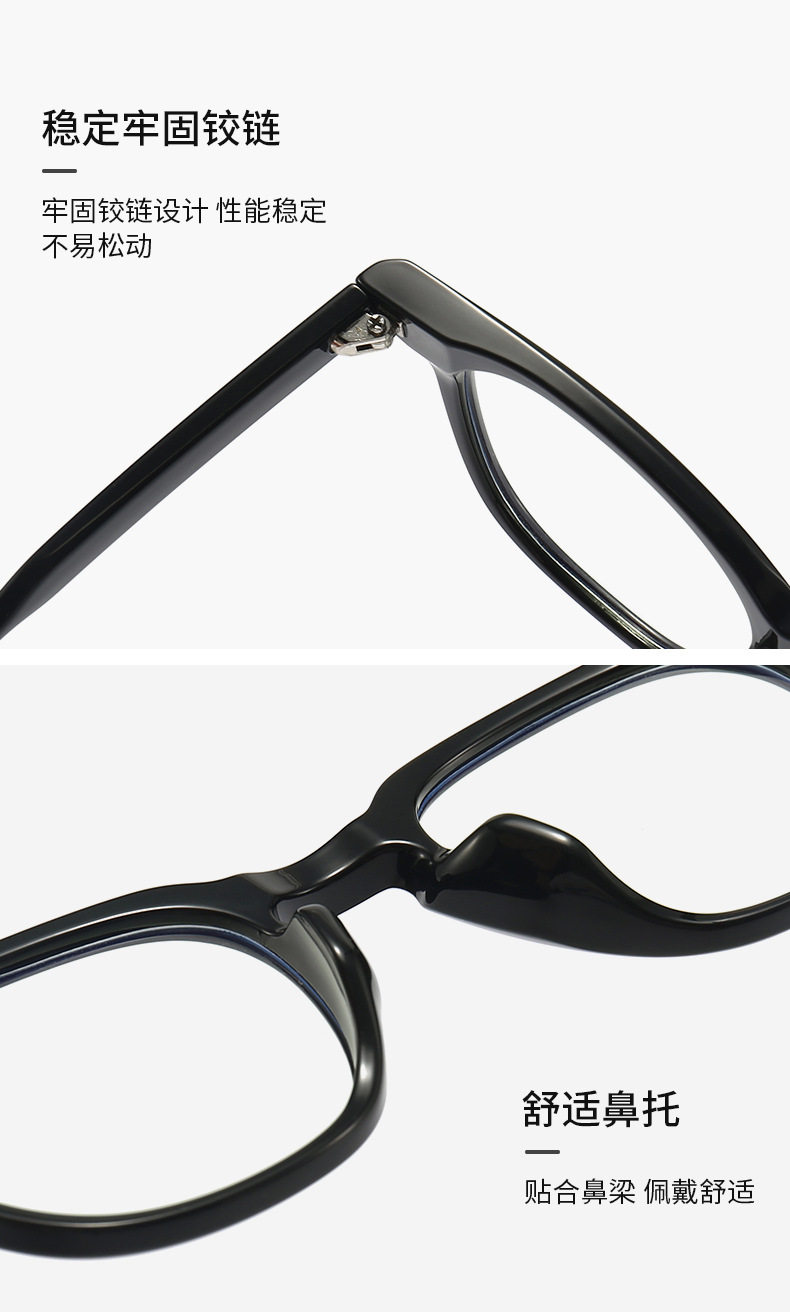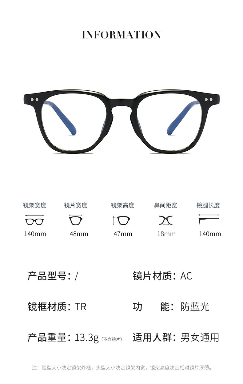 Black Frame Plain Versatile Commuting Glasses, Suitable for Prescription Lenses, Tr90 Ultra-Light Retro Anti-Blue Light Eyeglass Frame 636