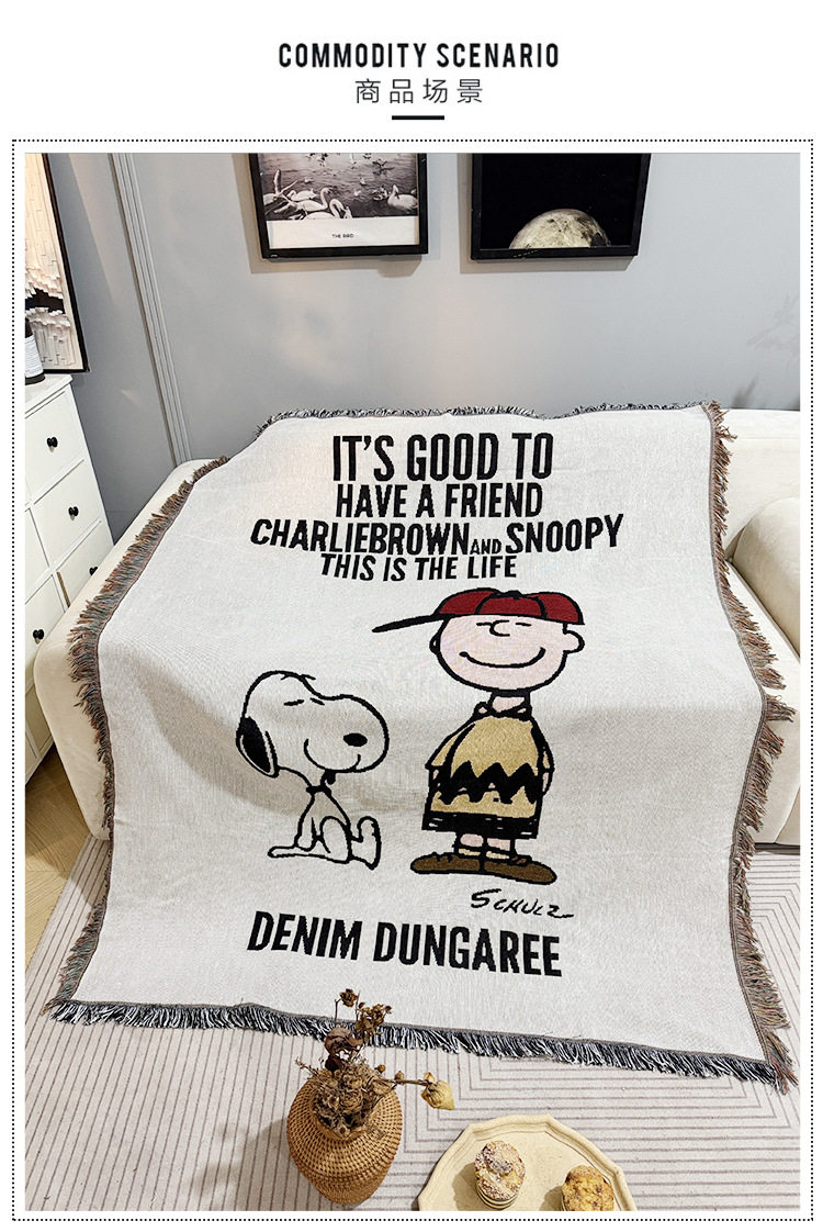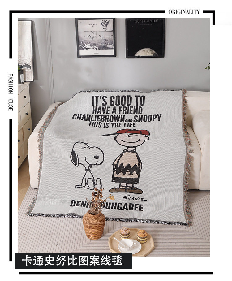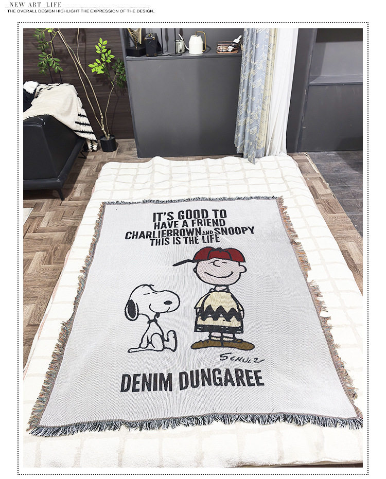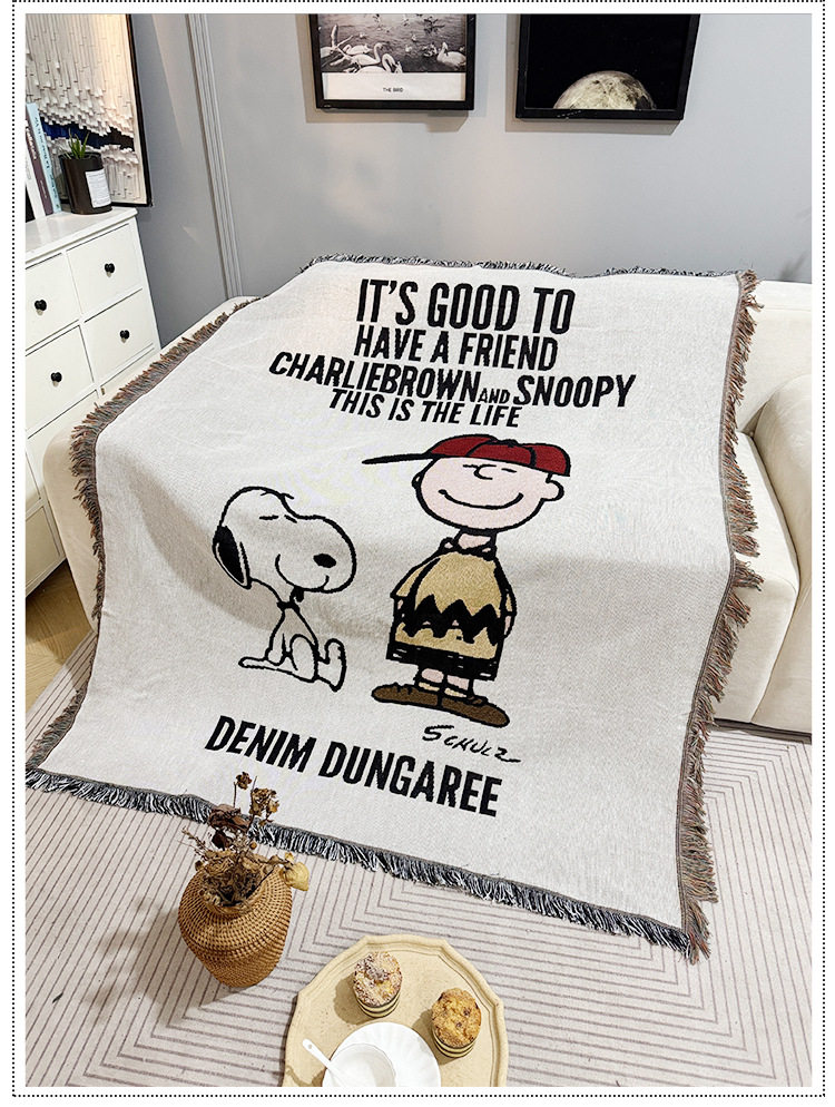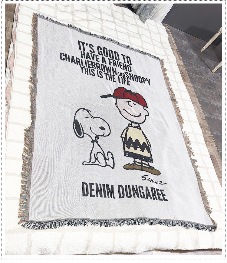 Vintage Snoopy Sofa Blanket Homestay Decoration Cartoon Sofa Towel American Style Leisure Blanket Sofa Cushion Bedroom Cotton Blanket