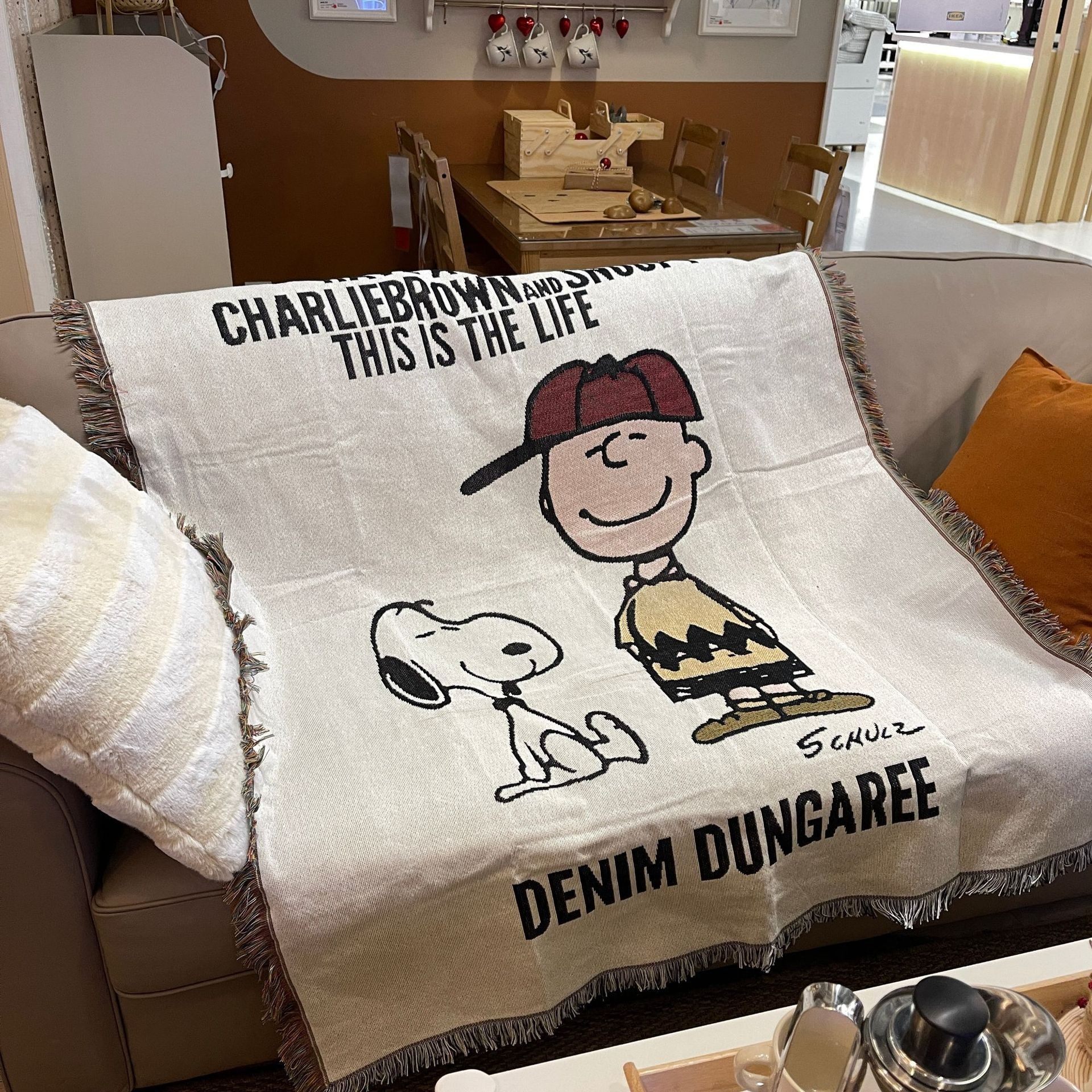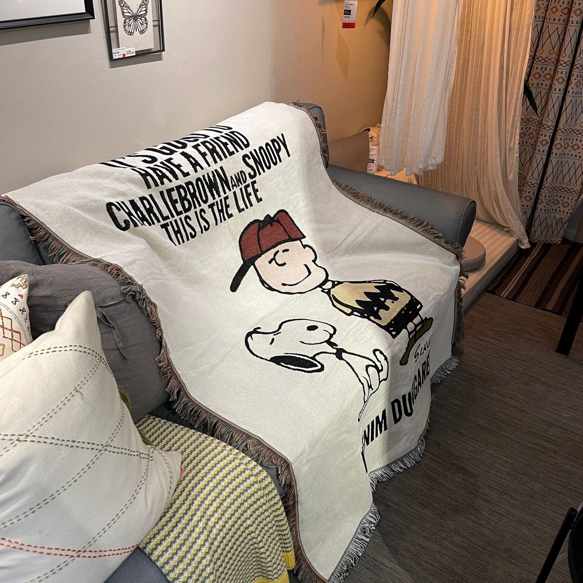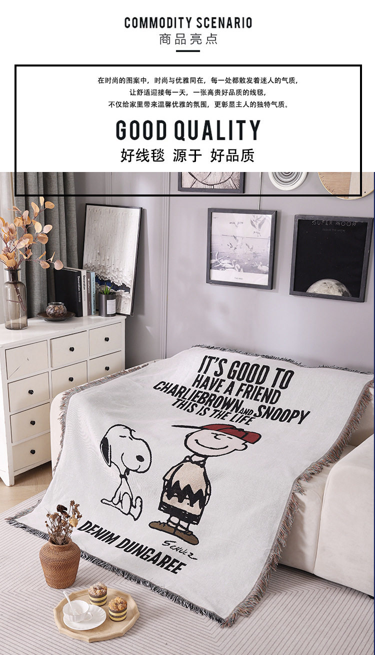 Vintage Snoopy Sofa Blanket Homestay Decoration Cartoon Sofa Towel American Style Leisure Blanket Sofa Cushion Bedroom Cotton Blanket