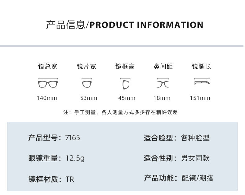New Square Frame Tr Retro Glasses Frame Xiaohongshu Ins Anti-Blue Light Frame Flat Myopia Glasses for Men and Women 7165