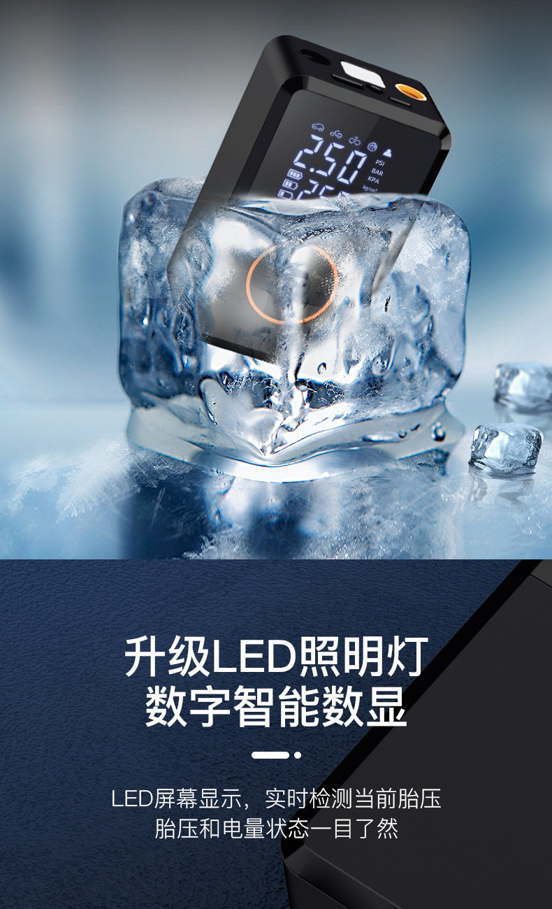 Intelligent Inflatable Car Air Pump, Illuminated Digital Display Electric Air Pump, Outdoor Emergency Wireless Car Air Pump