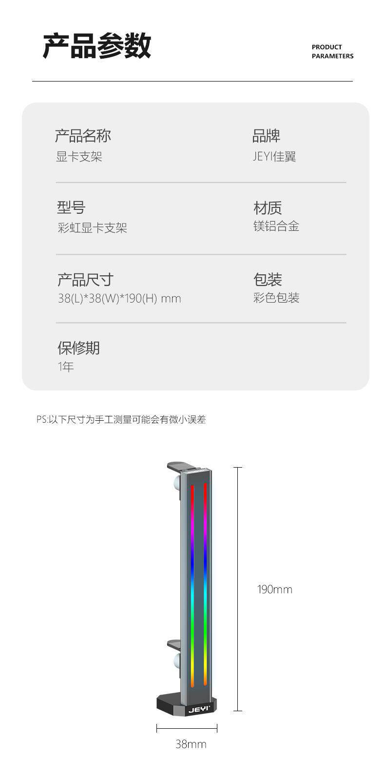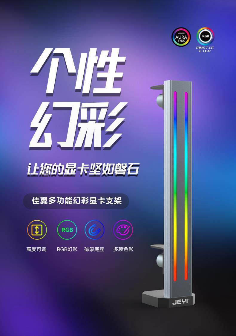 Jiayi desktop computer graphics card support frame can be raised and lowered with RGB colorful lighting graphics card bracket magnetic base