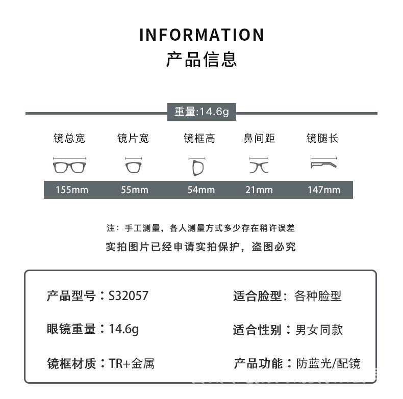 | Glasses structure | Full framework |