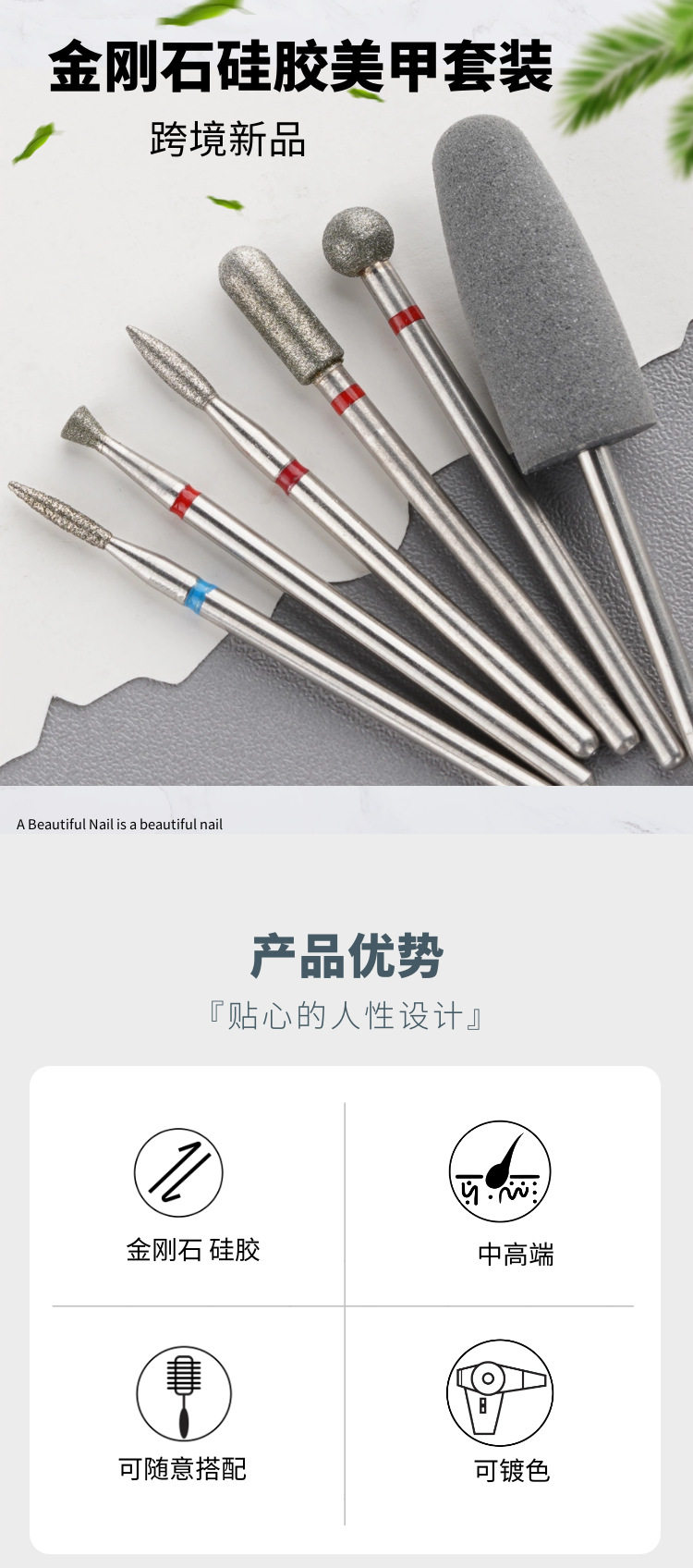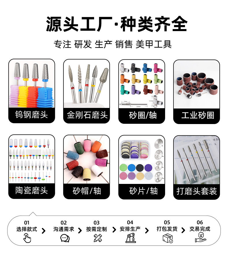 Diamond Polishing Exfoliating Pre-treatment Six Nail Art Polishing Head Set Nail Art Tool Polishing Drill