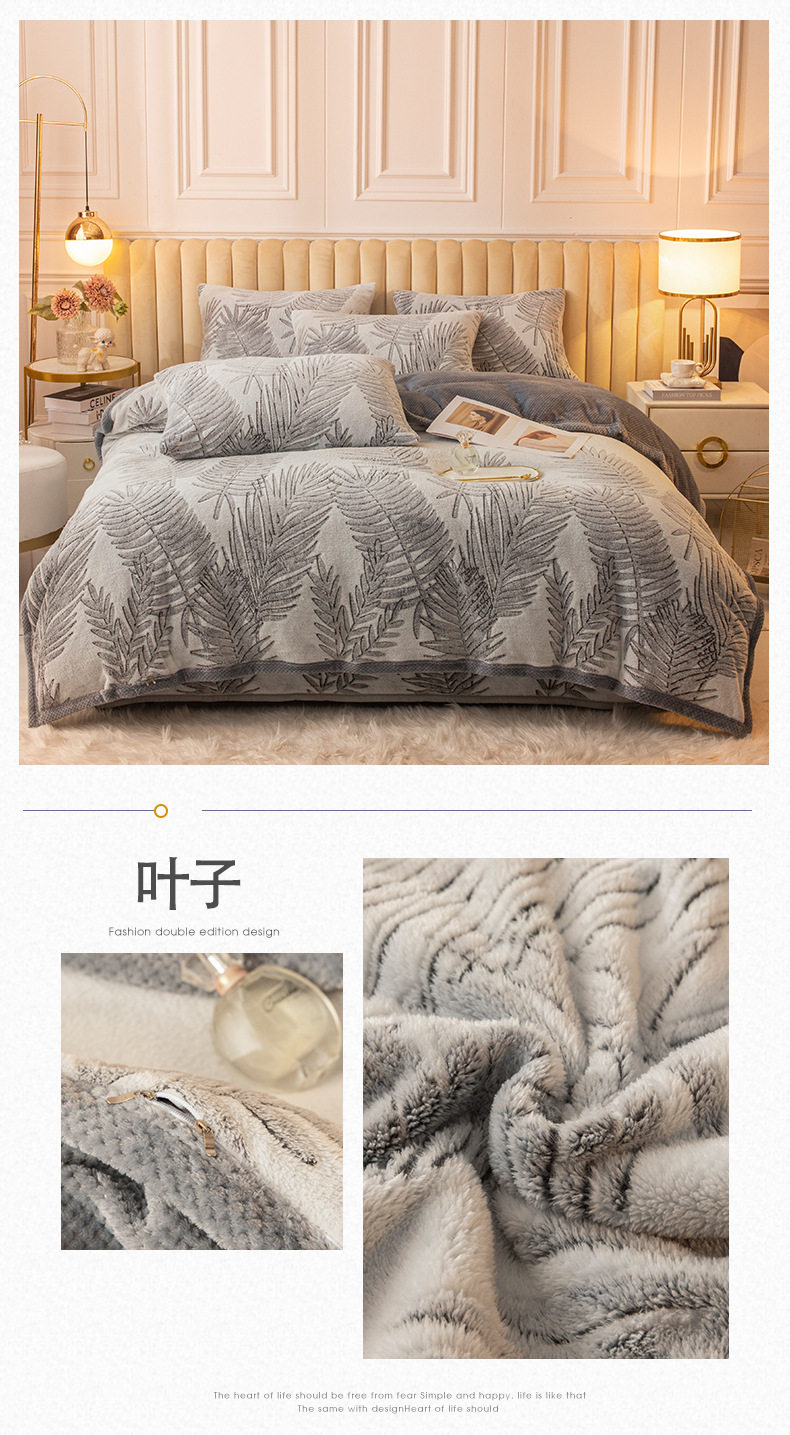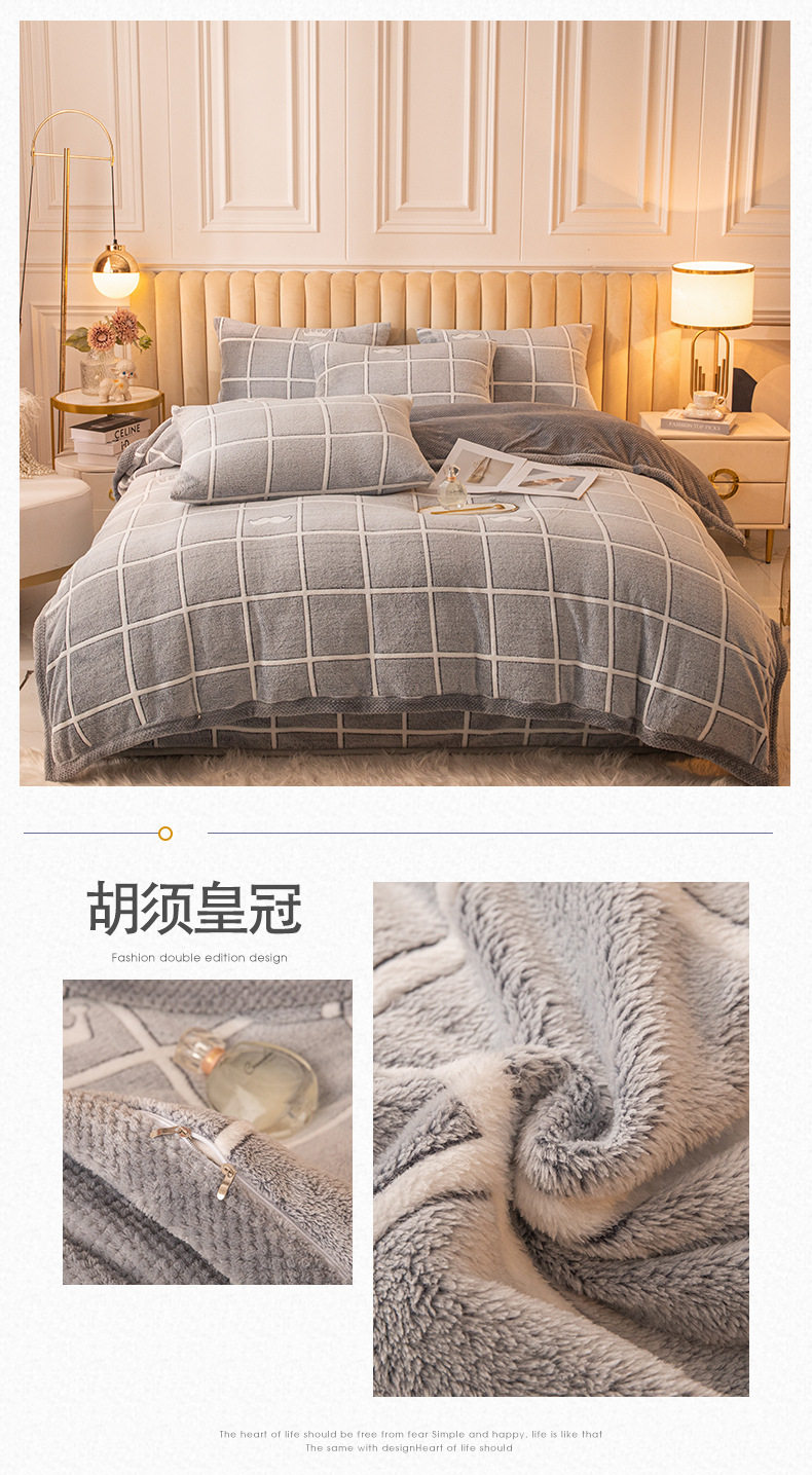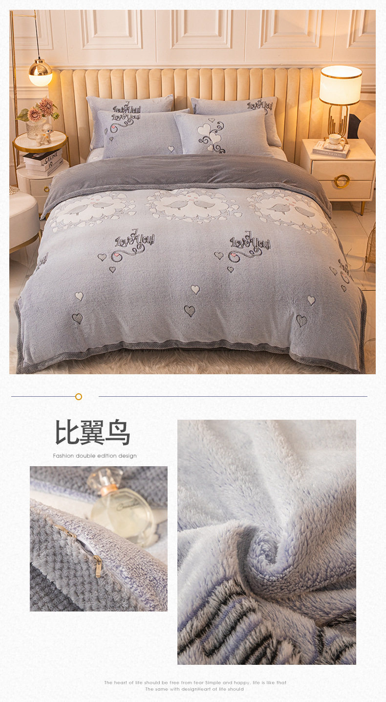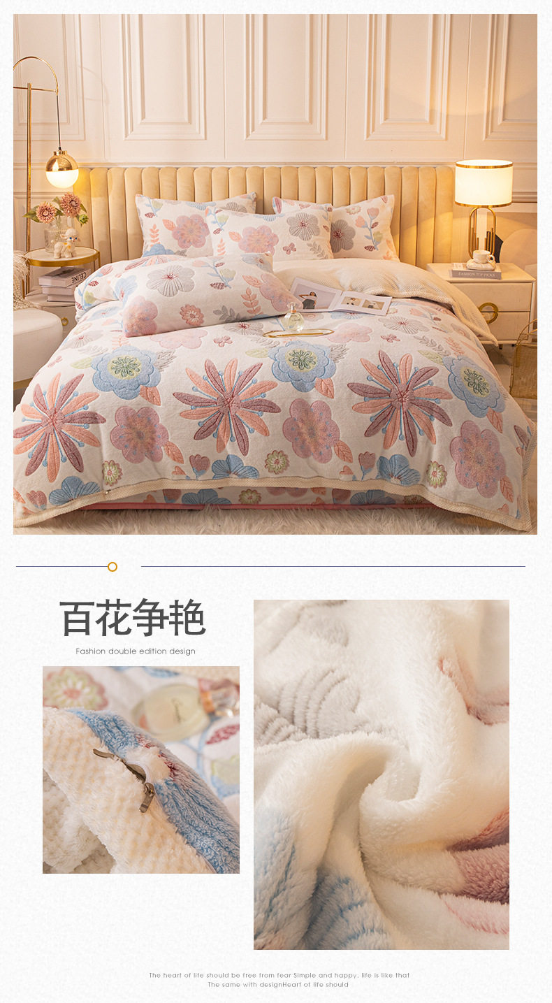 Cartoon Snowflake Fleece Four-piece Set Cute Thickened Coral Fleece Season Warm Double-sided Fleece Bed Sheet Quilt Cover Flannel Bedding