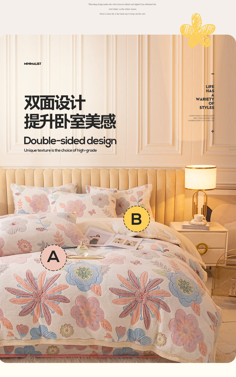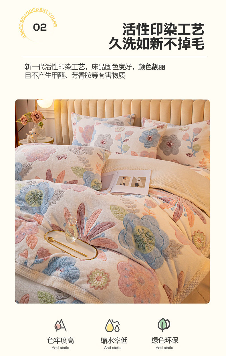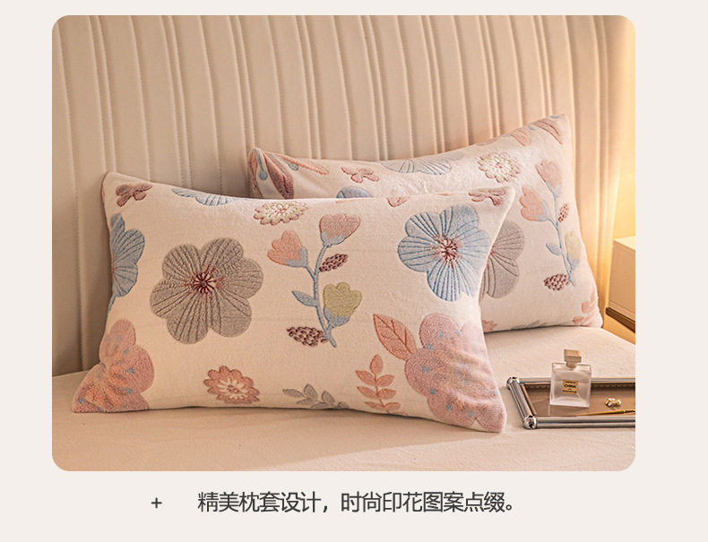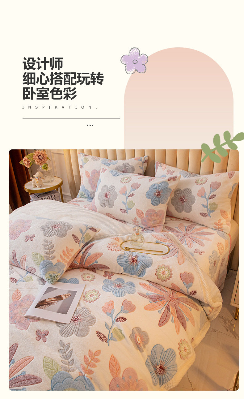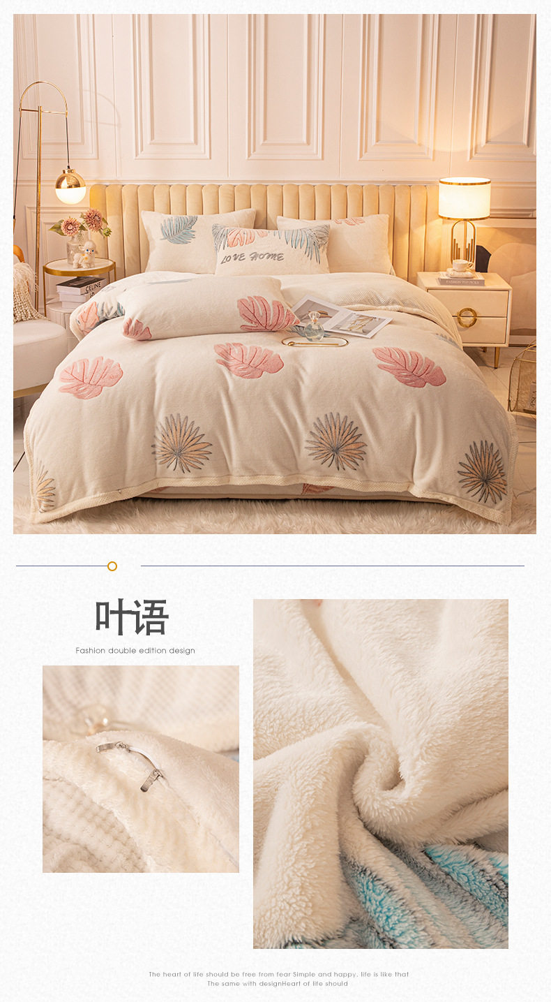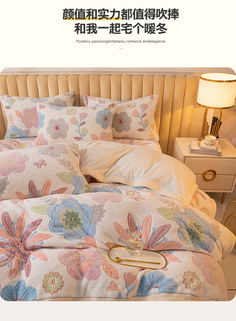 Cartoon Snowflake Fleece Four-piece Set Cute Thickened Coral Fleece Season Warm Double-sided Fleece Bed Sheet Quilt Cover Flannel Bedding