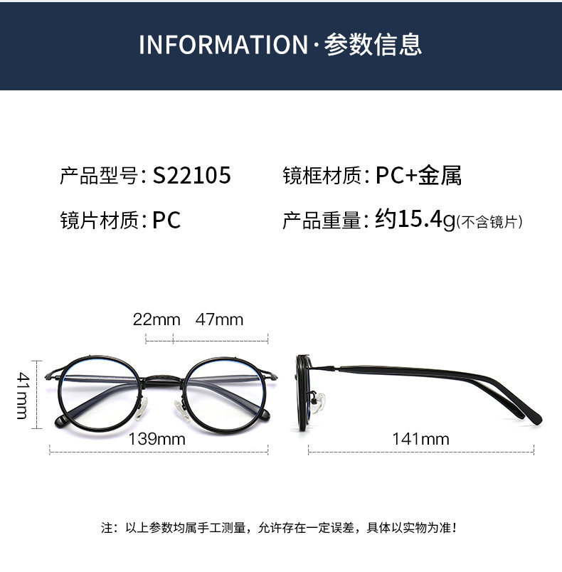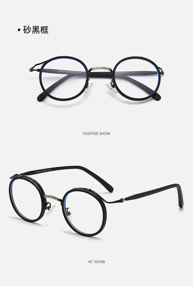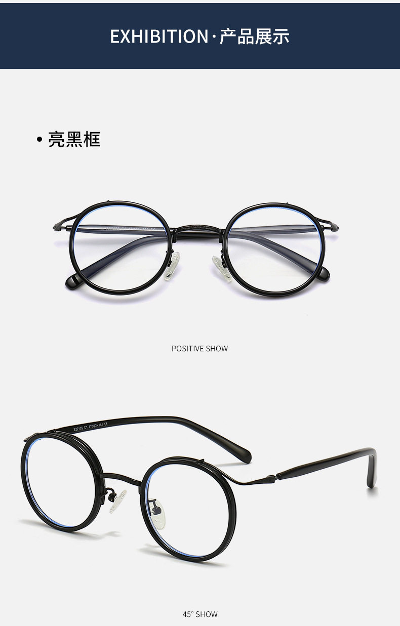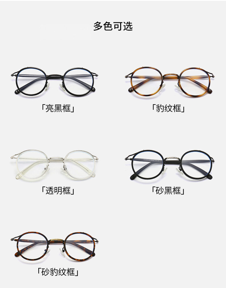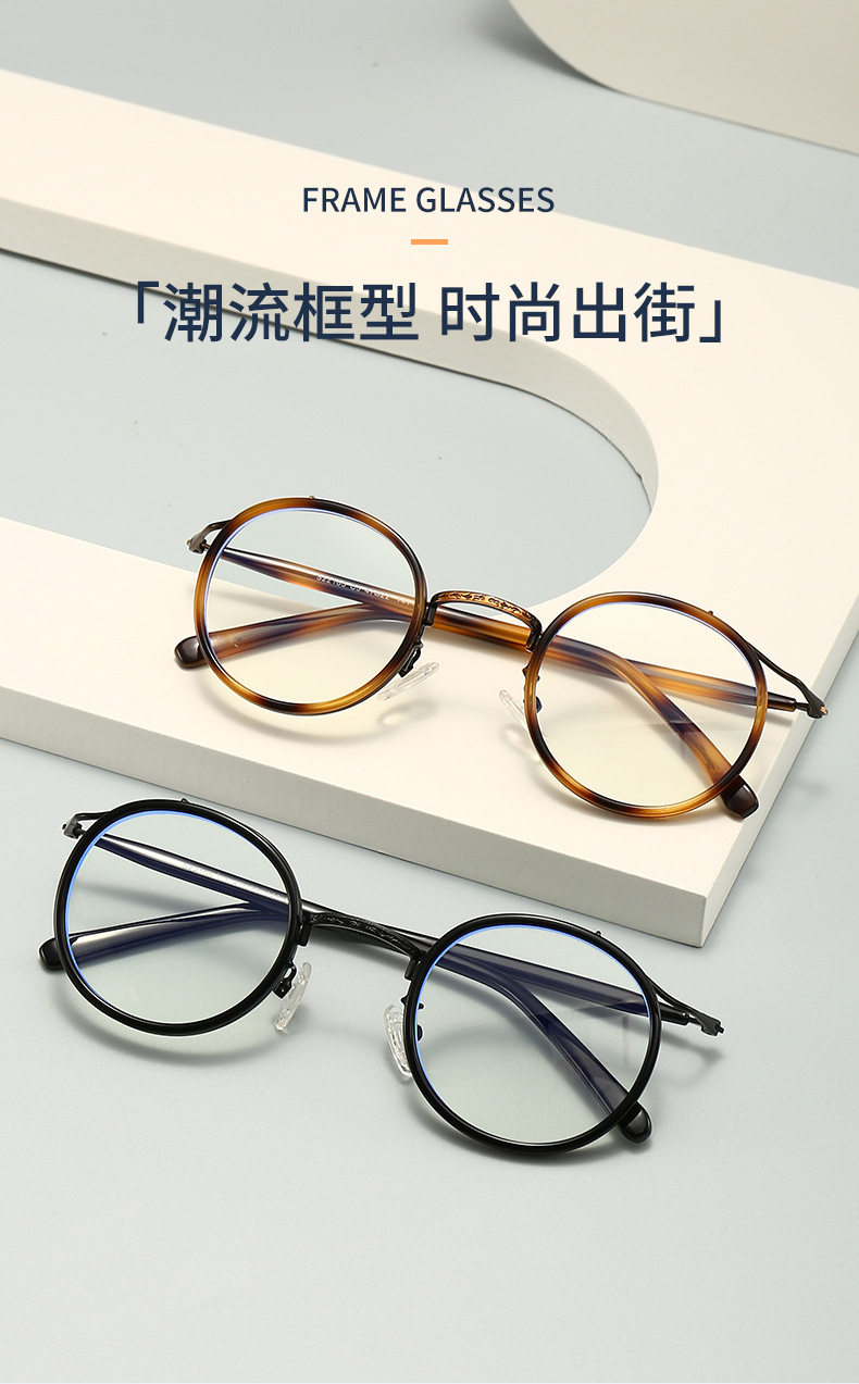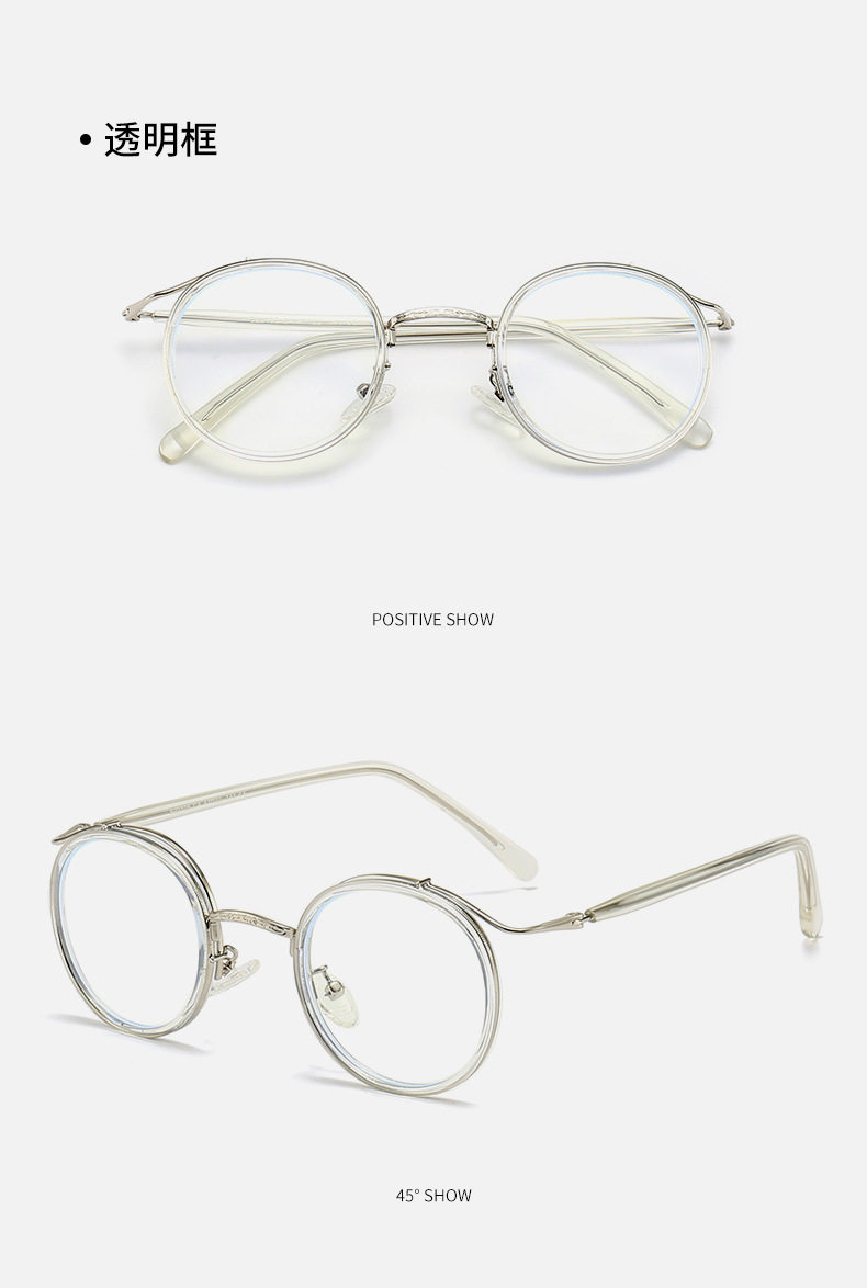 New fashion trend retro Japanese round frame glasses frame men's and women's TR90 transparent plain anti-blue light glasses frame