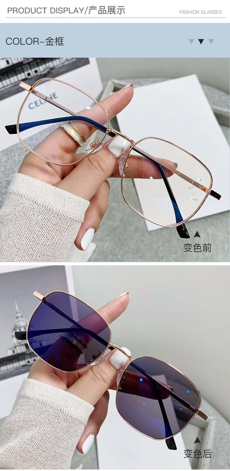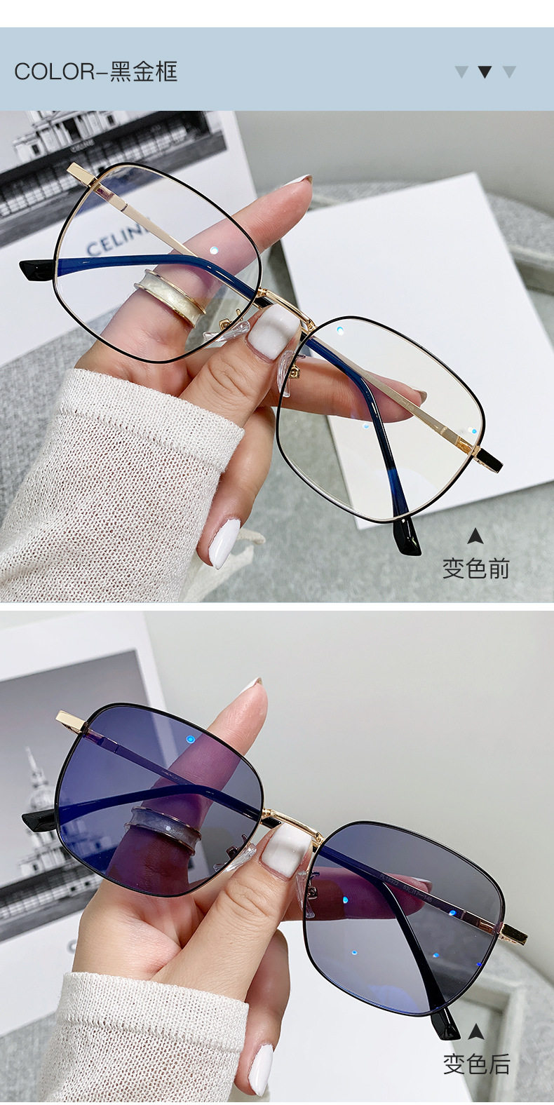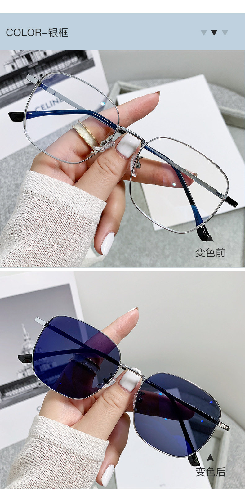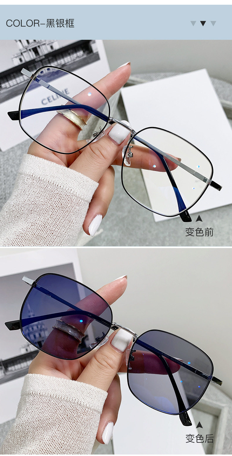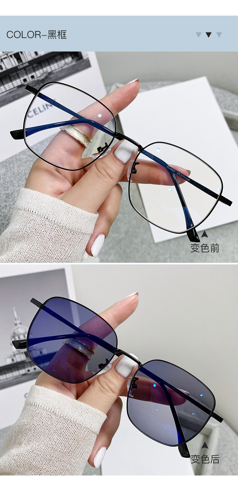 New Square Frame Anti-Blue Light Glasses Frame Non-Magnetic Titanium Flat Mirror Color-Changing Anti-Uv Eye Protection with Myopia Glasses for Women