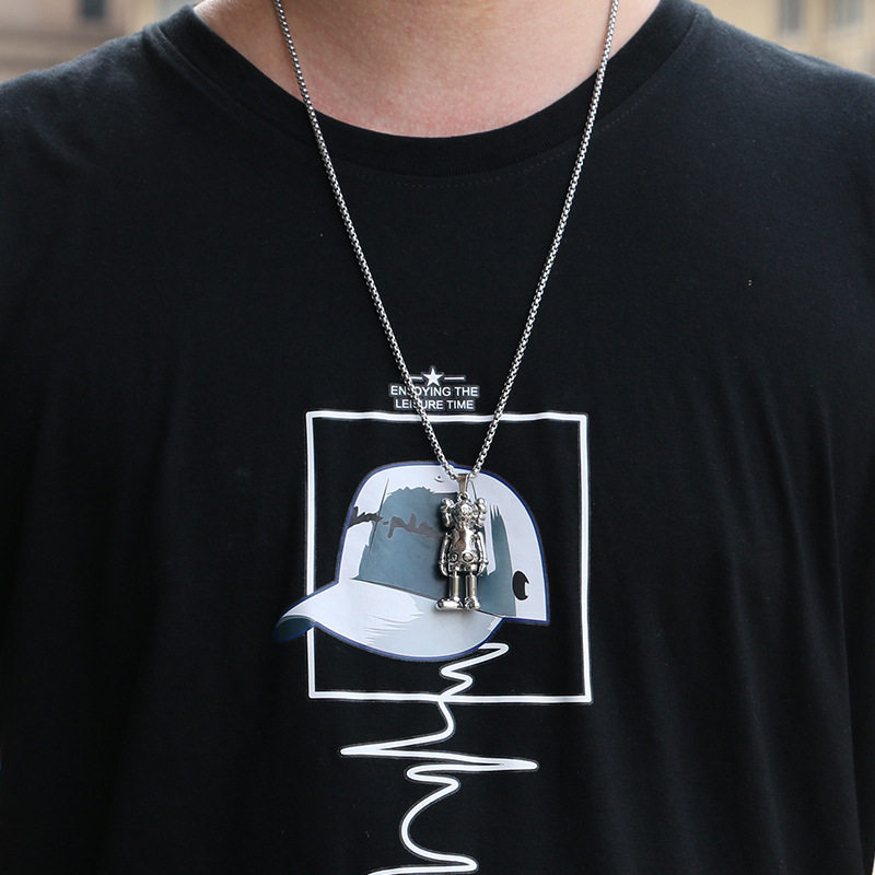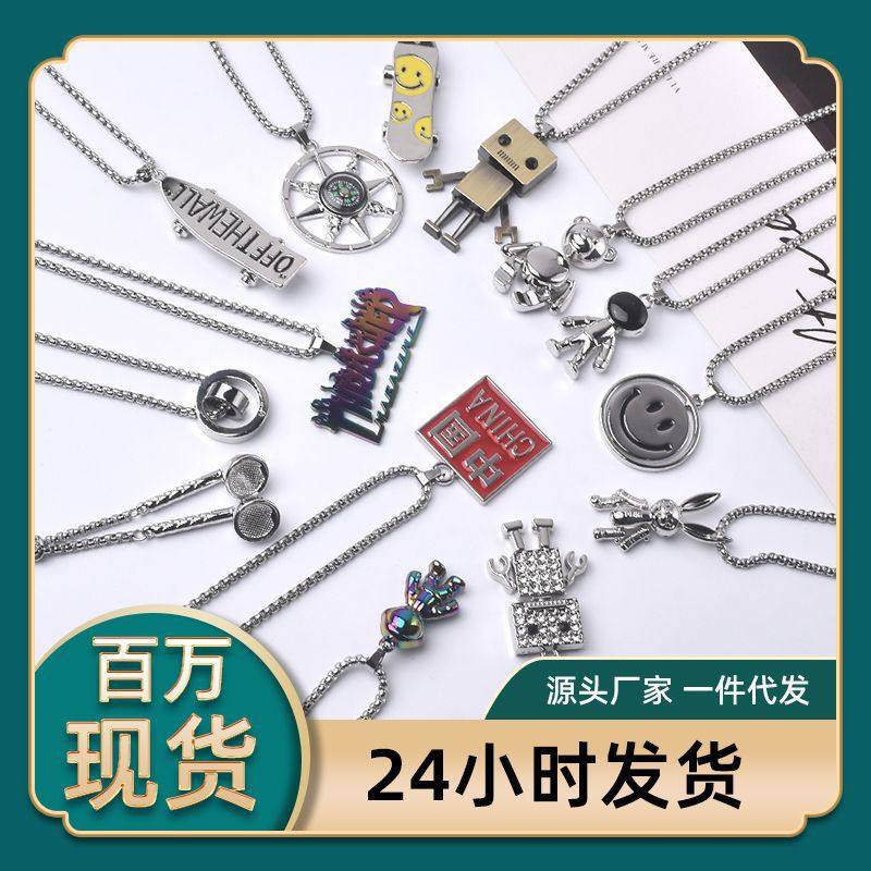 All-Match Titanium Steel Chain Hip-Hop Necklace Men's Trendy Brand Street Personality Internet Celebrity Pendant Didi Bouncing Woolen Chain Accessories Pendant