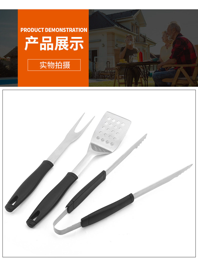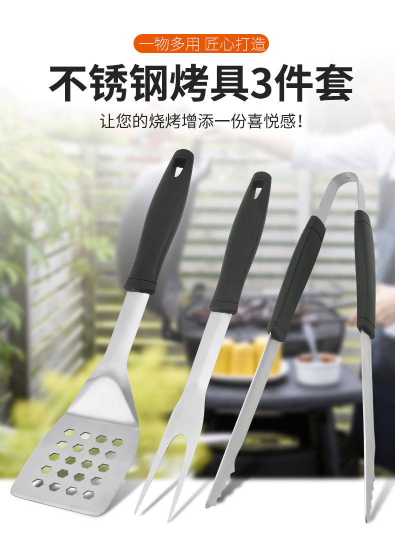 Customized Stainless Steel Outdoor Barbecue Tool Set Three-Piece Outdoor Combination Barbecue Fork, Spatula and Tongs